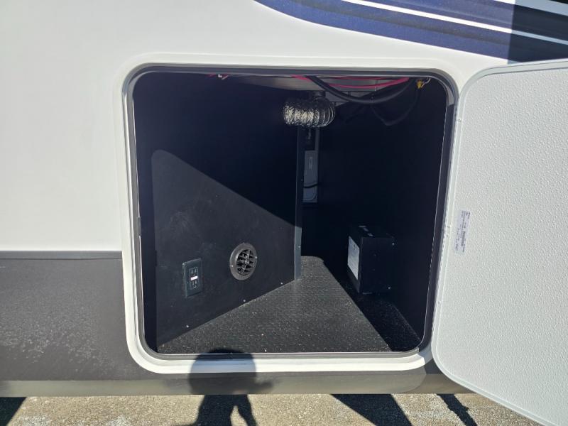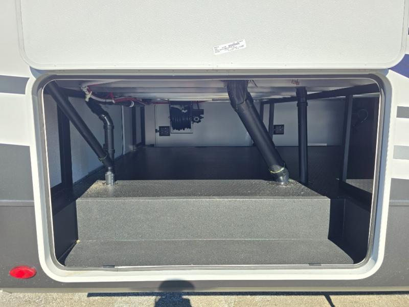 Experience a different camping life with residential furnishings and high end features in each one of these Palomino Columbus fifth wheels! The 101" wide body lets you walk around more throughout and the all-welded aluminum-frame superstructure has a snap-in ceiling molding to hold up through every adventure. Don't leave any of your gear behind either when you can easily store it in the climate controlled drop frame storage area. On the exterior, you'll find a heated utility convenience center, an outside sprayer to keep the dirt outside where it belongs, and magnetic compartment door holds to keep them from falling on you as you grab your items. Plus, there are some modern features that will really seal the deal like the Wi-Fi Booster with 4G LTE capability prep, upgraded true solid-surface countertops, power theater seating with USB charging, and a 260W solar panel for off-grid camping!