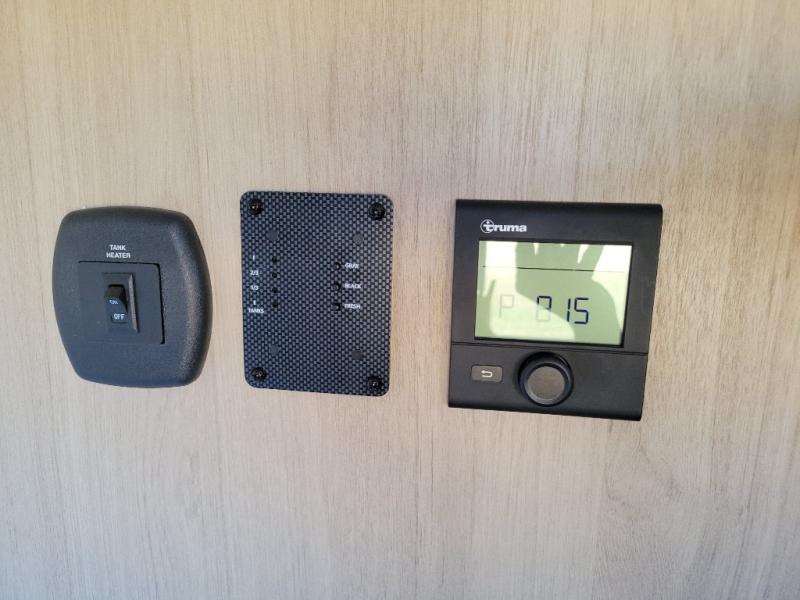 - Truma Upgrade Package: MaxxAir Deuxe Fan, Heated Underbelly, Truma Vario Heat, Truma Recirculating Aquago, and Truma Aventa A/C