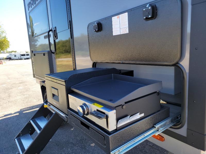 - Exterior Kitchen Option: Bar Top Area, Collapsible Sink w/Strainer, and Two-Burner Cooktop w/Glass Cover