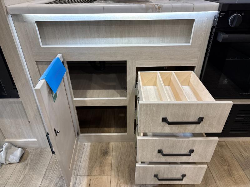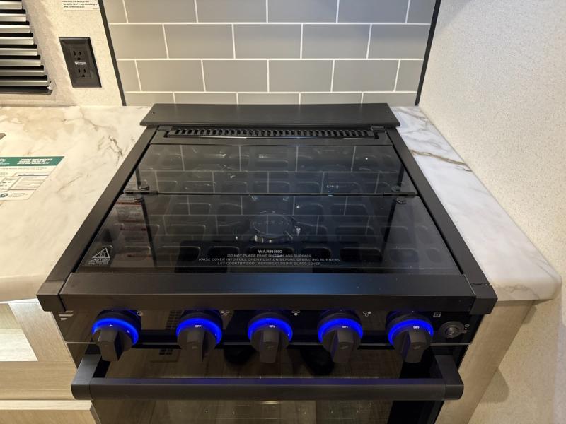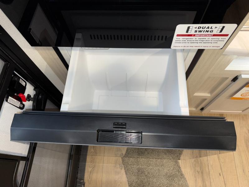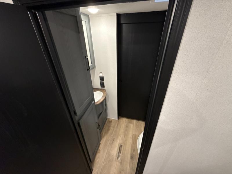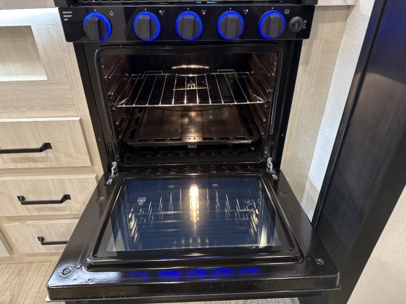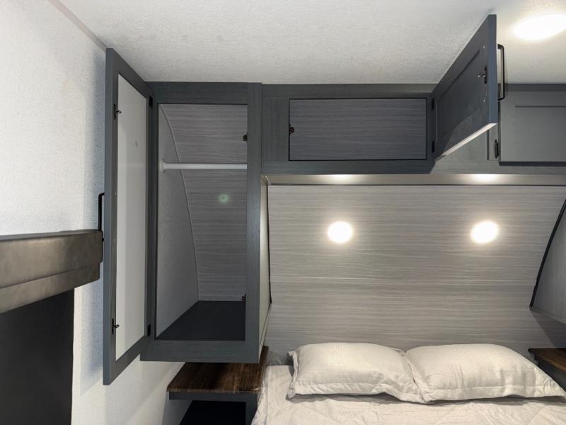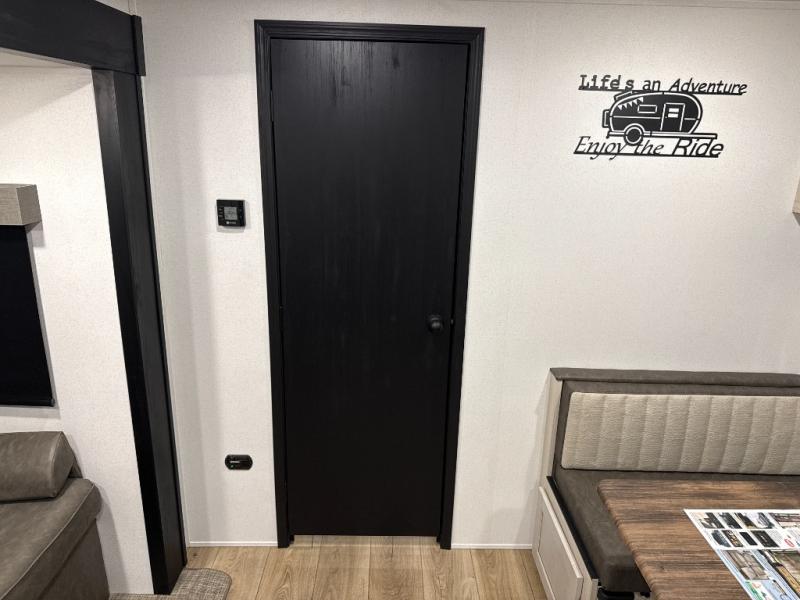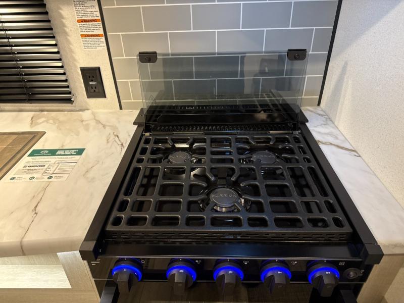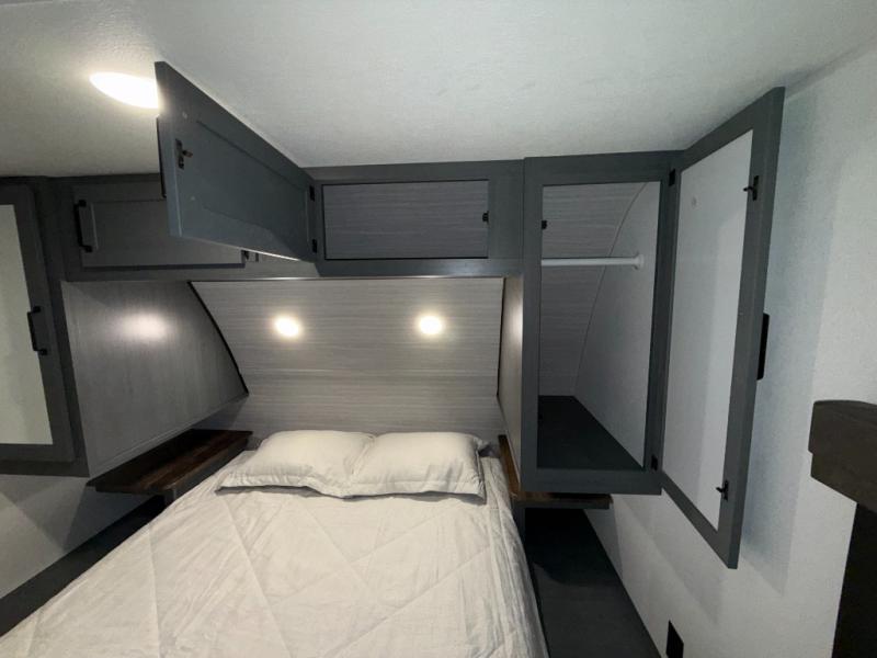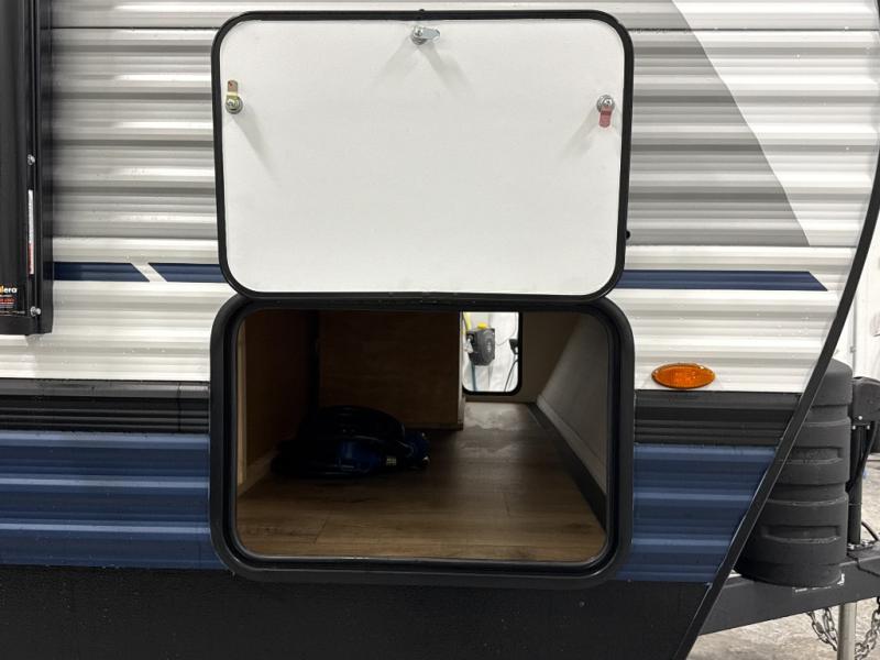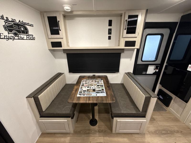 This rear kitchen travel trailer will be perfect for camping trips to the lake or woods! Once you've made breakfast on the stainless steel oven and range, you can dine at the booth dinette or take your plate outdoors to sit under the 18' electric awning. There is also a sofa slide out inside for a comfy place to relax. The walk-thru bath features a shower with a seat for added comfort, and you'll love having your own space in the front master bedroom. Here, you'll find a queen bed plus dual bedside closets to keep your things organized!