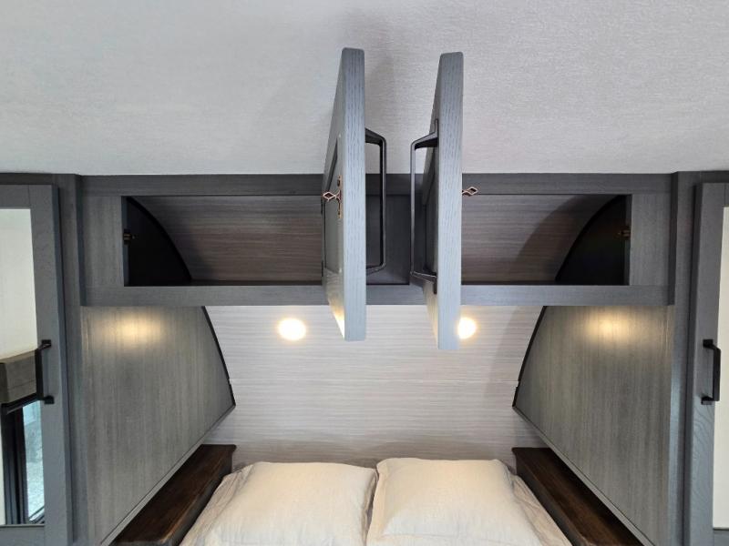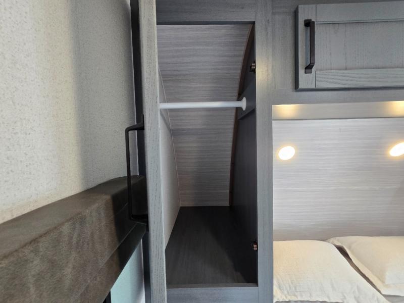 - Bunk Beds: The rear of the trailer features double-sized 48" x 76" bunk beds, perfect for kids or guests. These bunks also come with storage underneath, maximizing space.