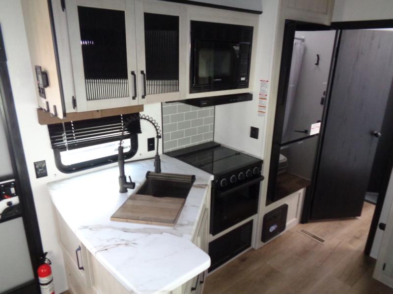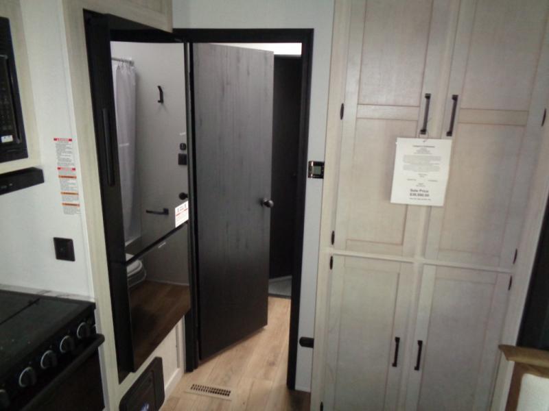 The most spacious toy hauler travel trailer in the Puma Ambush lineup, this unit is ready for adventure when you are! There are dual entry doors, one of which leads to the 13' separate garage. Here, you'll find 62" rollover sofas, an optional queen bed electric lift, plus a 7' 3" ramp door with spring assist for easy unloading. The walk-through bath will be easily accessible for everyone to use, and the main living room is shared with the kitchen so everyone can gather together when dinner is being made. A 21" oven comes standard in the kitchen, along with a stainless-steel convection microwave with an air fryer and an 11-cu. ft. 12V black glass residential style refrigerator. When you're ready for bed, the front private bedroom with an RV queen bed will provide a great night's rest, and there are dual shirt closets to keep your clothes wrinkle-free.