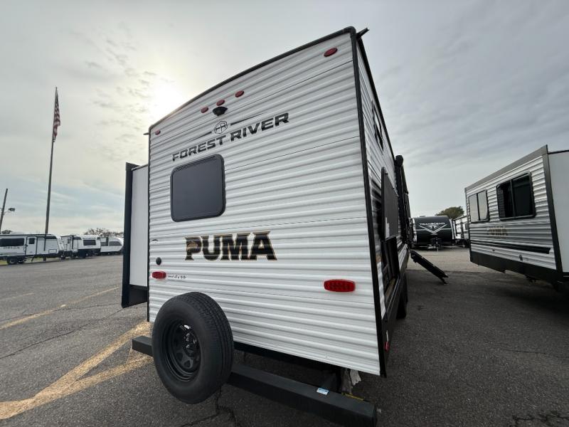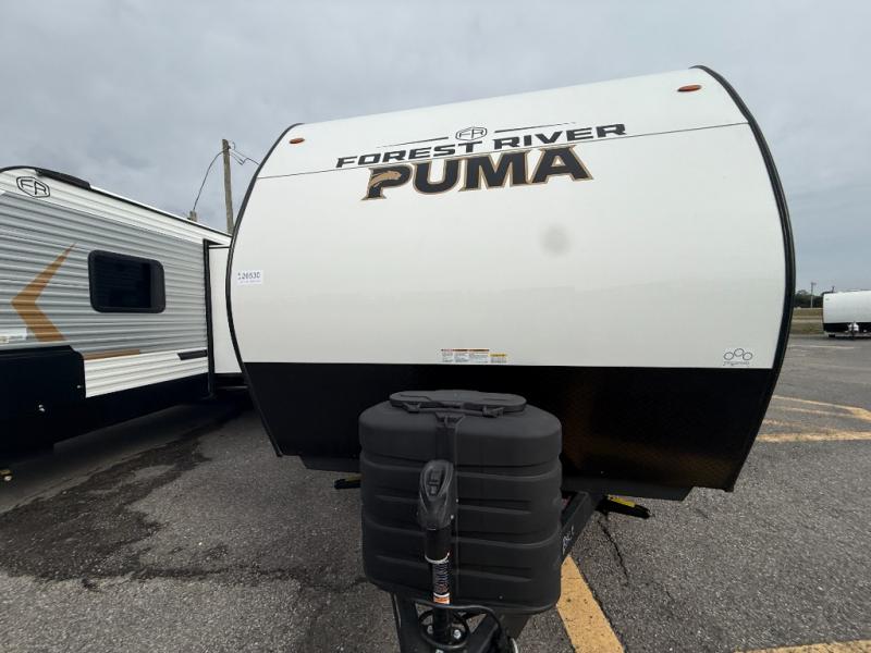 The Puma Camping Edition by Palomino offer an affordable travel trailer for rookie campers or seasoned RVers! They are built with 5/8" tongue and groove plywood flooring and a front diamond plate for added protection. There are also exterior clamp style door latches, back up camera prep, and 20 lb. LP bottles. Head inside to find Thermofoil countertops with a smooth drop edge, bedroom USB ports and outlets, and a GE appliance and kitchen package.