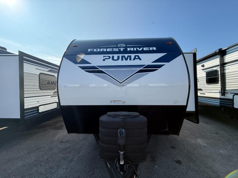 If you're looking for family-fun adventures then you need one of these Palomino Puma fifth wheels or travel trailers! They are built rugged, easy to tow, and jam packed with features. The Darco wrapped underbelly will protect your units vitals and the AlphaPly roofing membrane covers it. They also have new aluminum wheels and a powder coated steel I-beam frame. Inside, the Congoleum linoleum will be easy to keep clean, and the night roller shades will provide privacy when it's time to turn in. You'll also enjoy an electric awning with an LED light strip plus an AM/FM/Bluetooth stereo and two outside speakers to keep the party going!