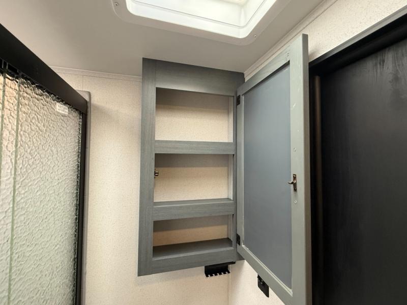 Bathroom: Full bathroom; shower is typically 32" x 40" in many units. Optional radius shower (34" × 34") is reported in some dealer specs.