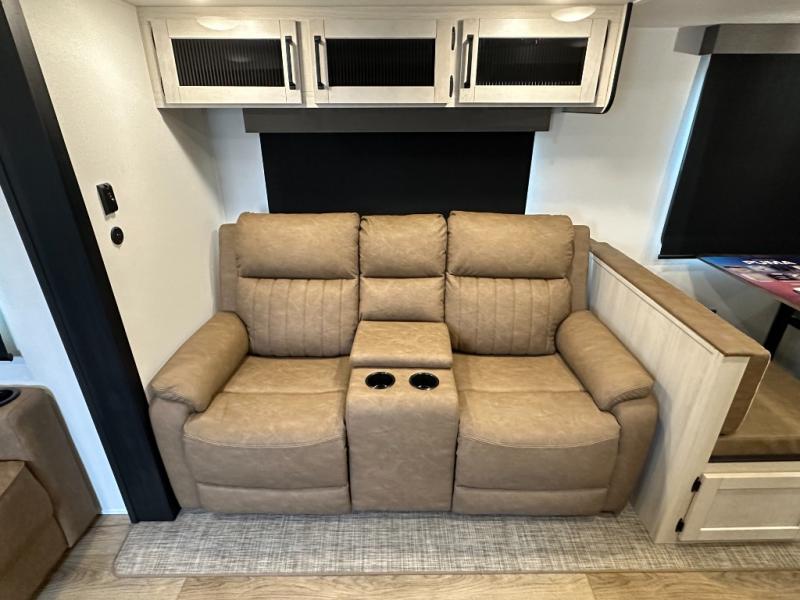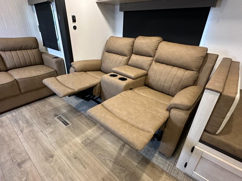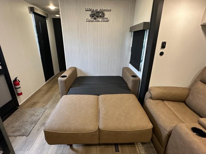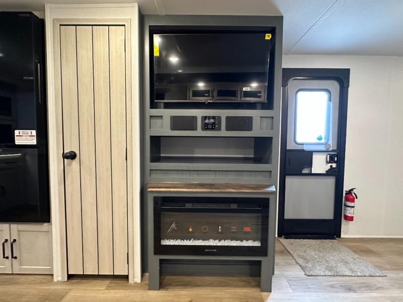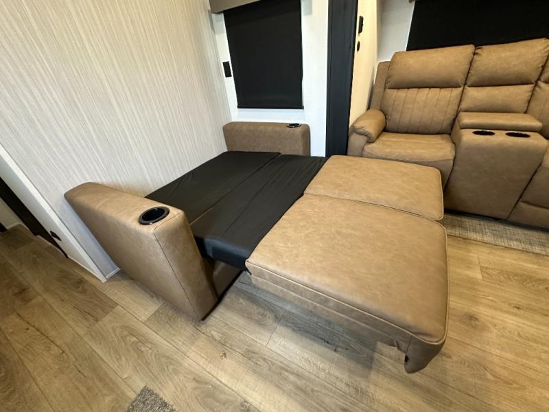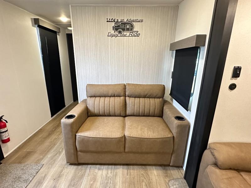 Outside Shower, 50 Amp Service, 2nd A/C, Micro Outside Kitchen w/Griddle, Theater Seating.