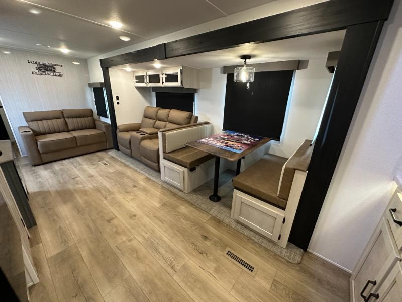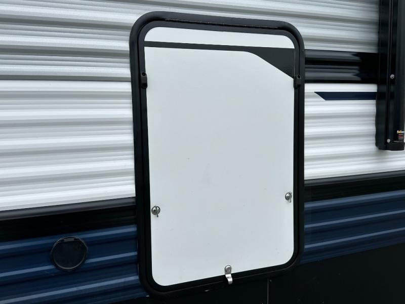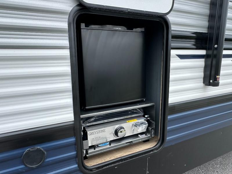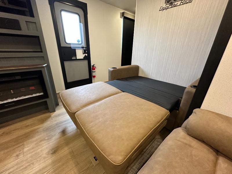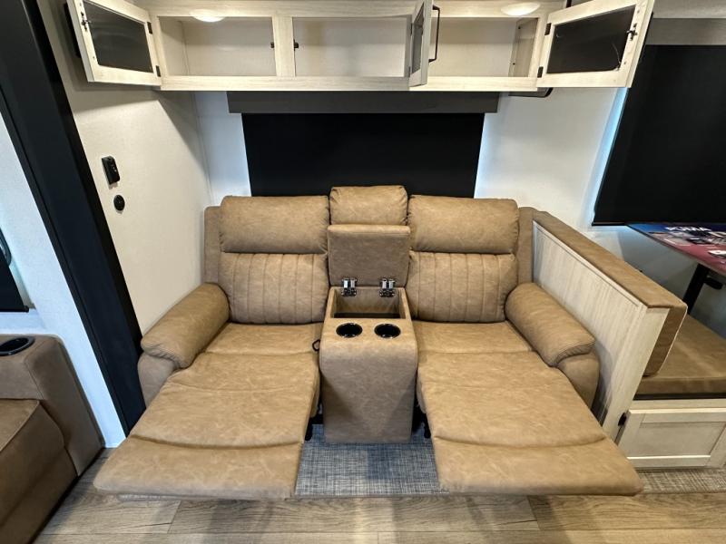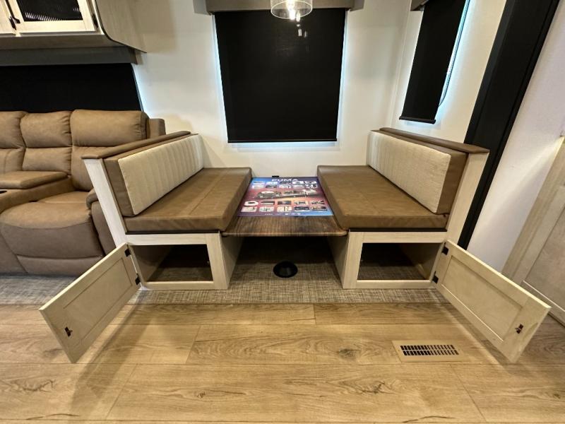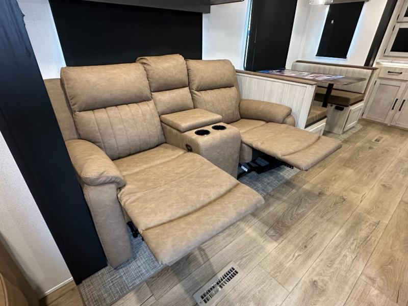 Outside Shower, 50 Amp Service, 2nd A/C, Micro Outside Kitchen w/Griddle, Theater Seating.