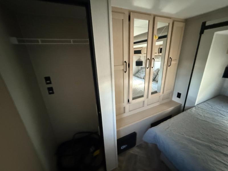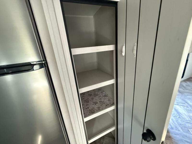 Experience a home away from home with this travel trailer! The front kitchen has everything you will need to prepare your best meals and you can enjoy them at the booth dinette. The rear private bedroom has a 72" x 80" king bed slide across from a dresser, a wardrobe, and a closet with washer and dryer prep. Freshen up in the full bathroom with the 32" x 40" shower and then enjoy a cup of coffee relaxing in one of the two recliners or on the sofa! Choose the optional outside micro kitchen with a griddle for even more convenience!