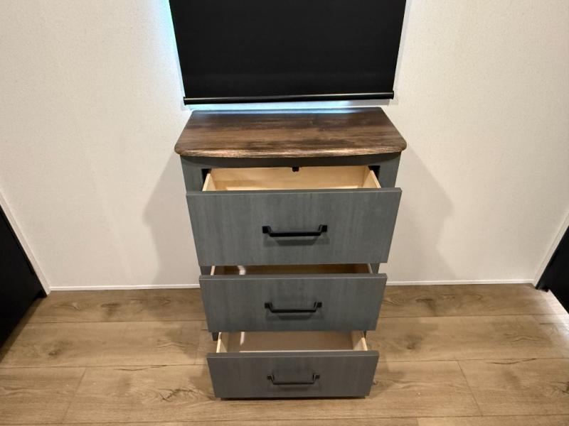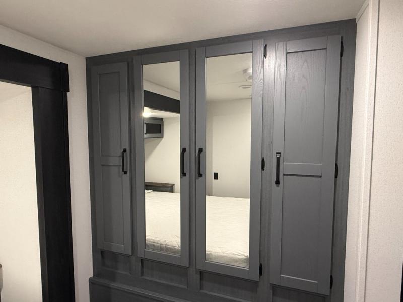 Front private bedroom: Queen bed on a slide-out, dresser, front closet, washer/dryer prep available.