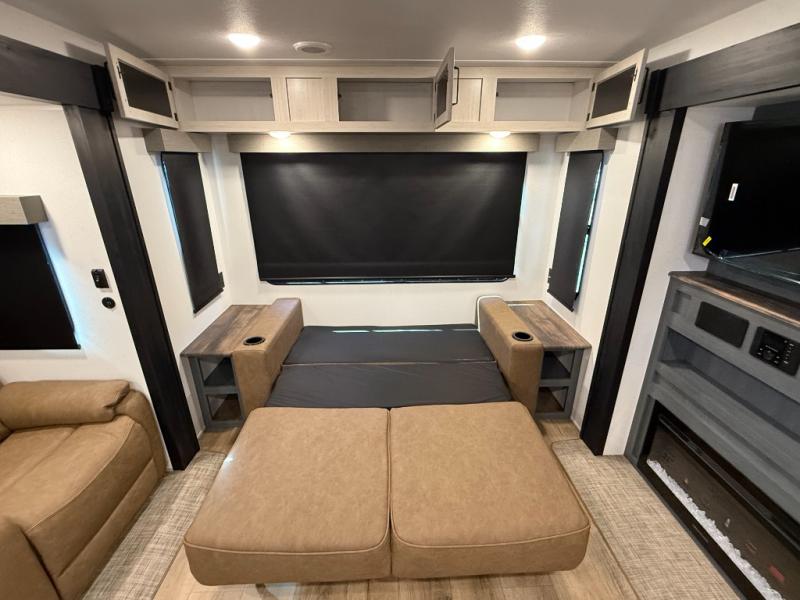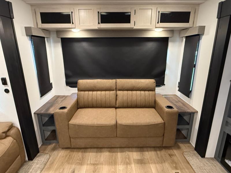 4 Electric Stab Jacks, Power Tongue Jack, Dual A/C's, Solid Steps, Trifold Sofa.