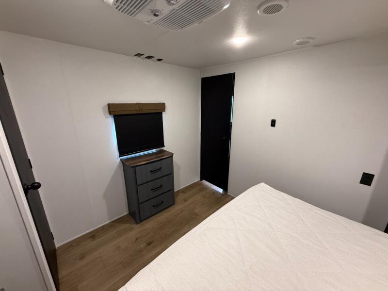 Front Private Bedroom: Located at the front, with a queen bed slide, dresser, closets (one prepped for washer/dryer) for increased comfort.