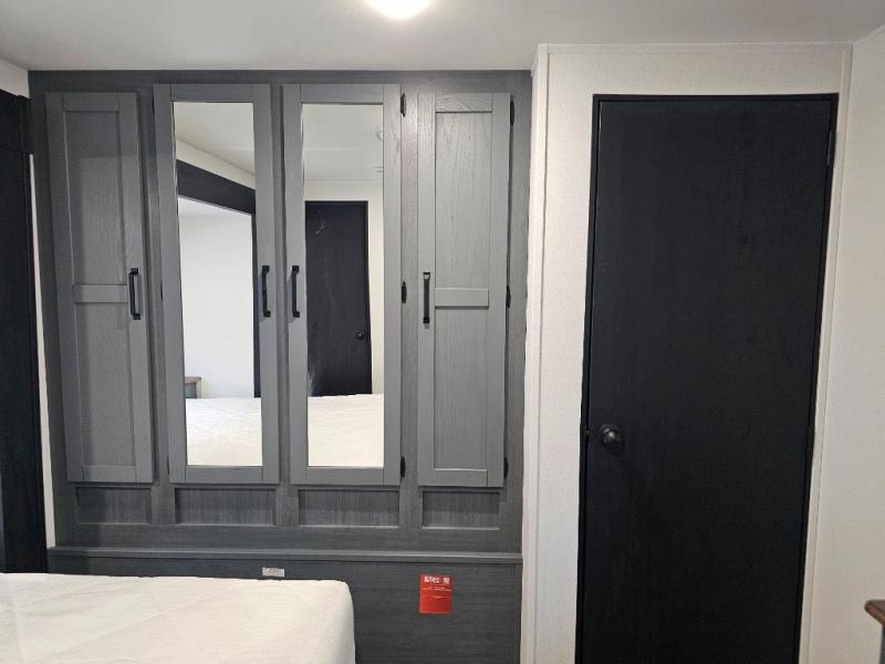Private front bedroom with a queen bed slide for extra floor space.
