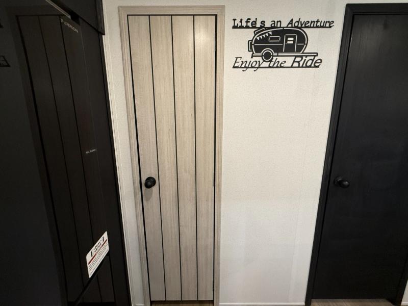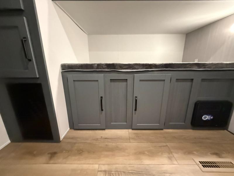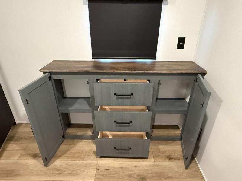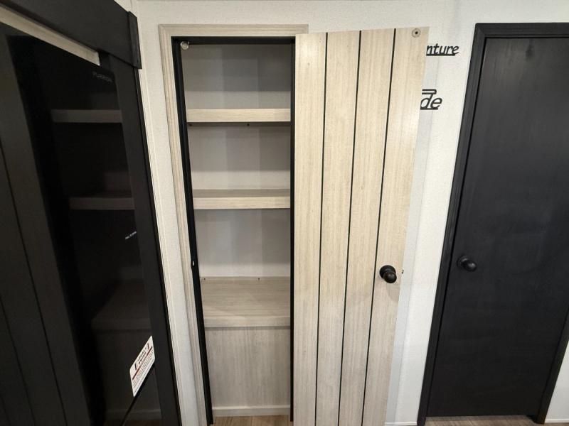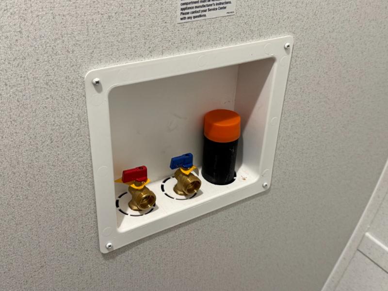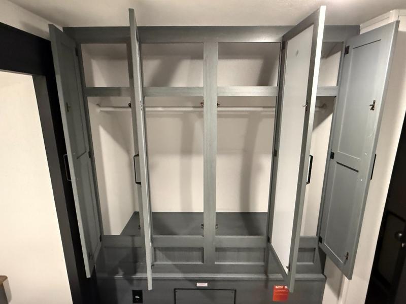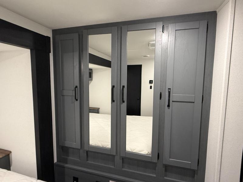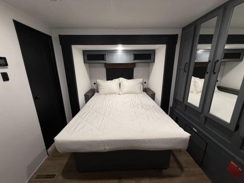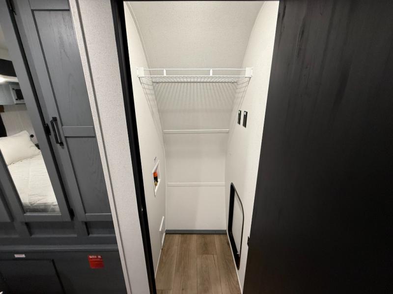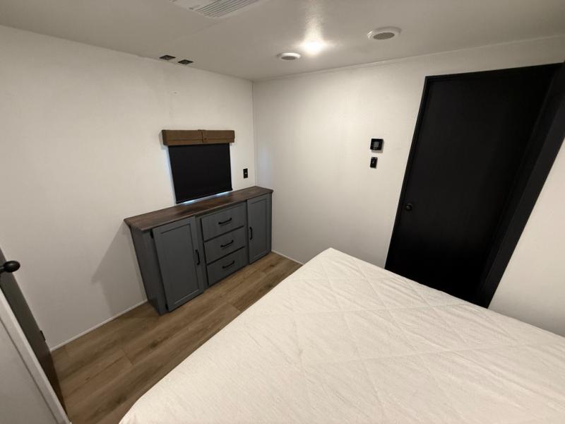 Queen bed with a slide-out, dresser, and large front closet. Washer & dryer prep in a second front closet. -