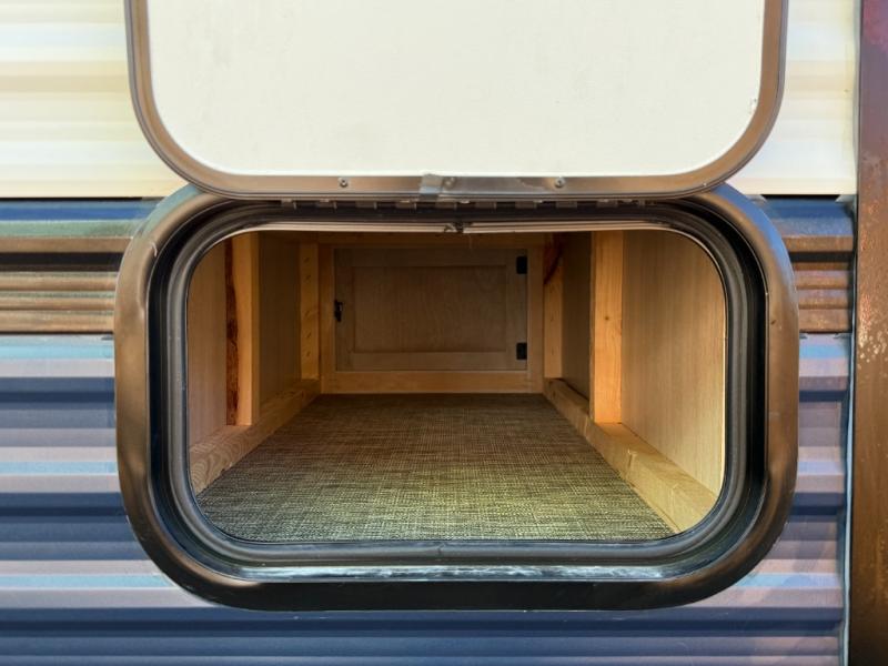 Pass-through storage compartments for exterior gear Darco-wrapped underbelly, AlphaPly roofing membrane, powder-coated steel I-beam frame for durability