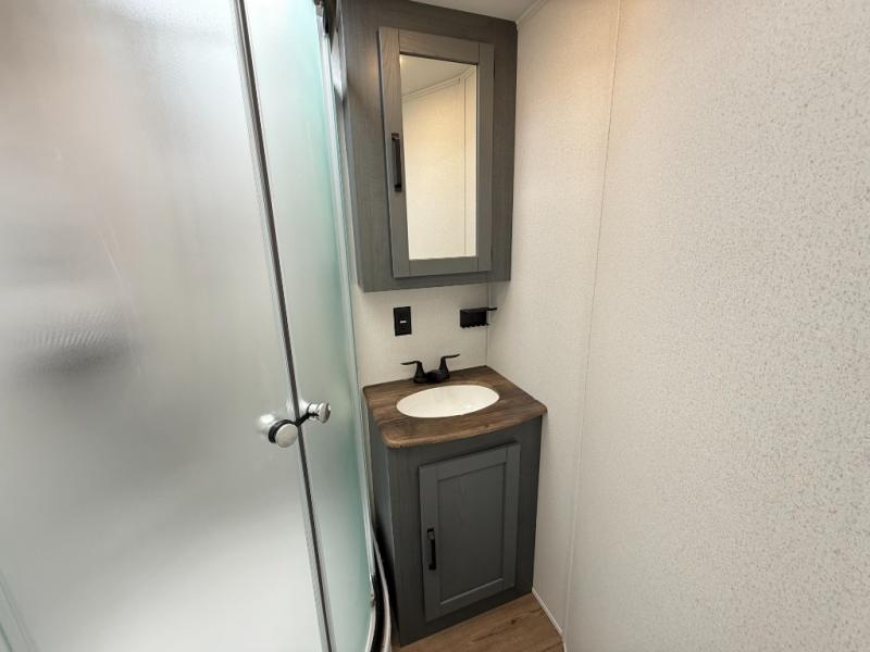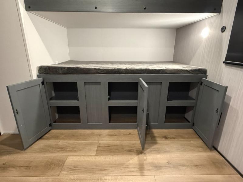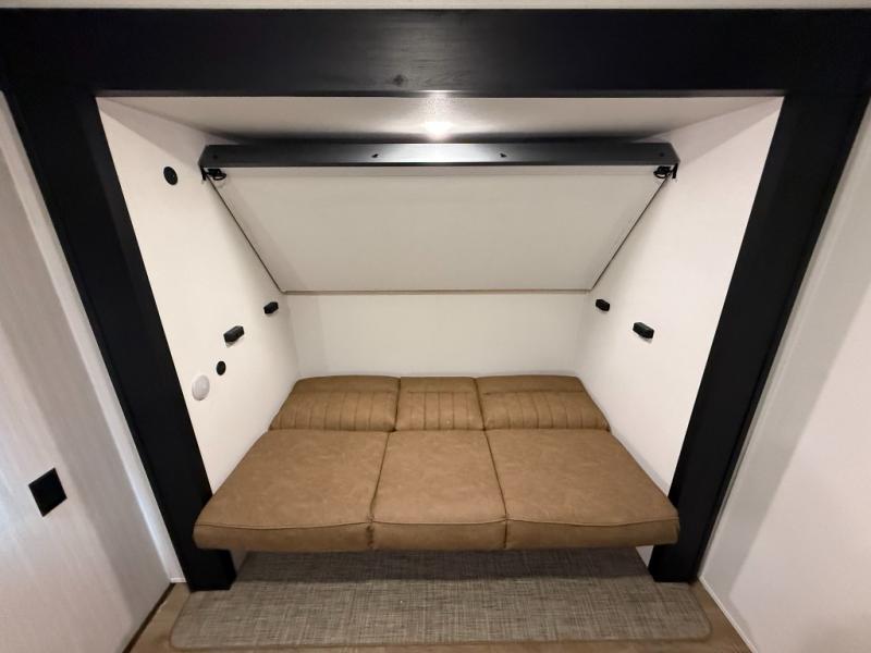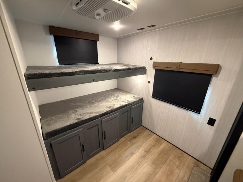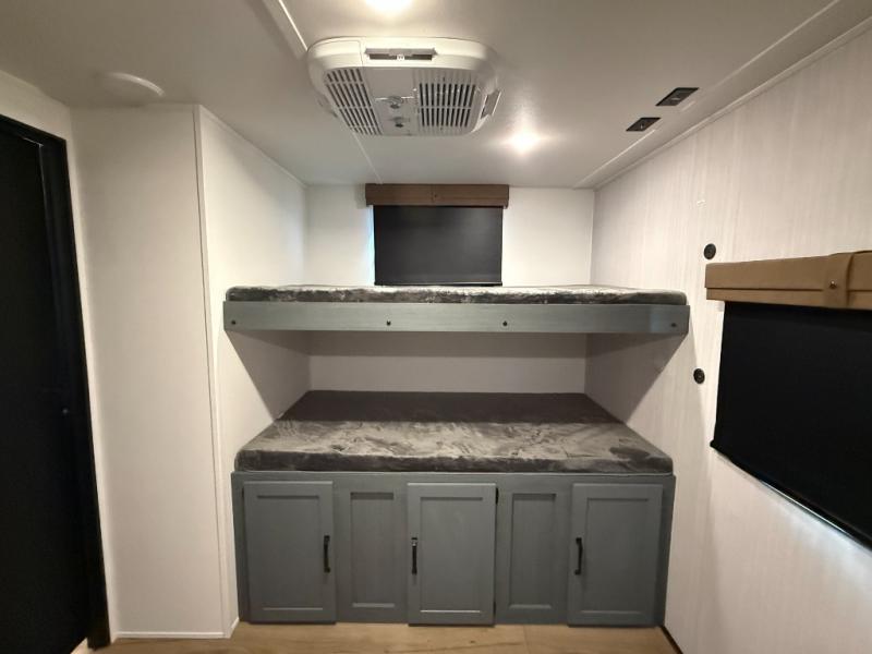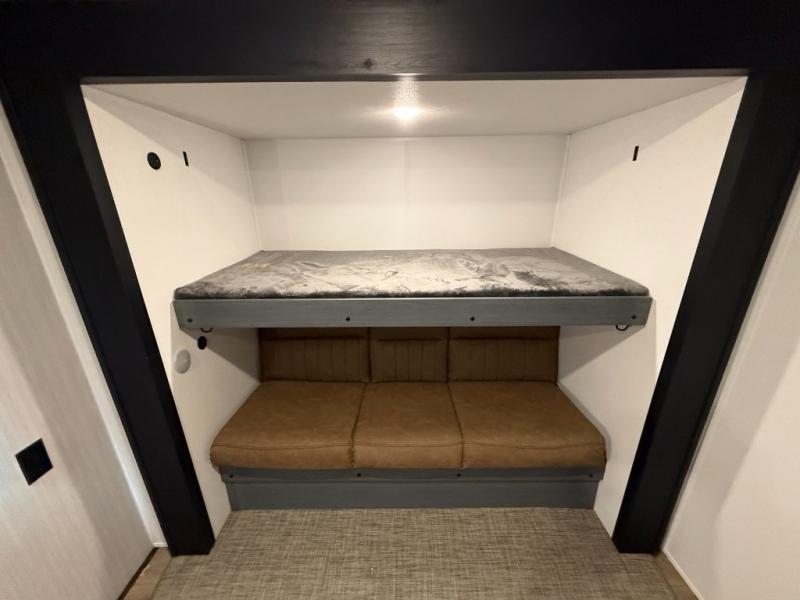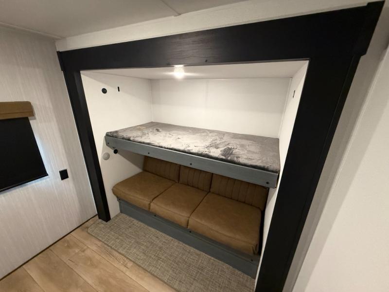 Bunkhouse in the rear, with 3 bunks + Jiffy sofa.