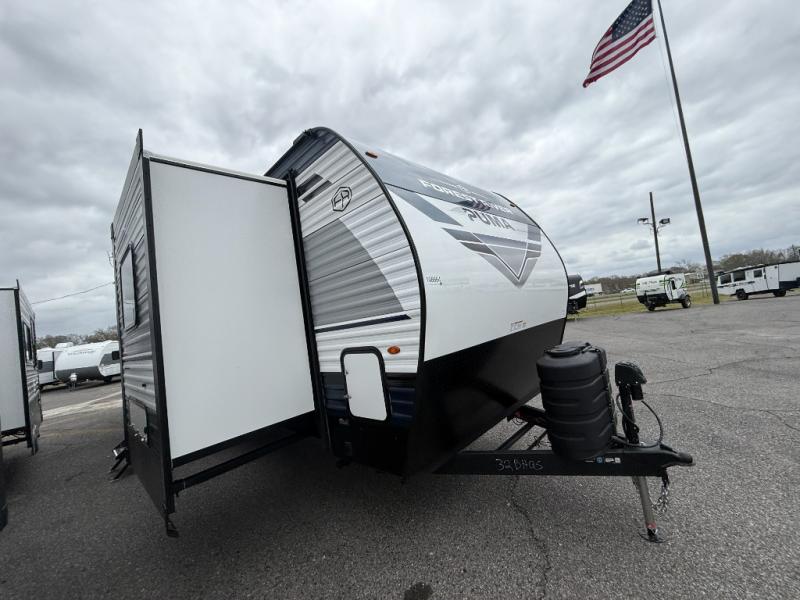 If you're looking for family-fun adventures then you need one of these Palomino Puma fifth wheels or travel trailers! They are built rugged, easy to tow, and jam packed with features. The Darco wrapped underbelly will protect your units vitals and the AlphaPly roofing membrane covers it. They also have new aluminum wheels and a powder coated steel I-beam frame. Inside, the Congoleum linoleum will be easy to keep clean, and the night roller shades will provide privacy when it's time to turn in. You'll also enjoy an electric awning with an LED light strip plus an AM/FM/Bluetooth stereo and two outside speakers to keep the party going!
