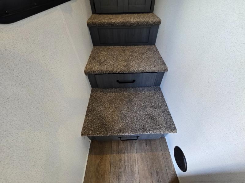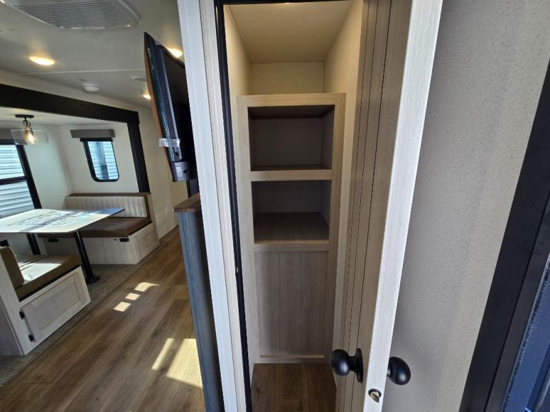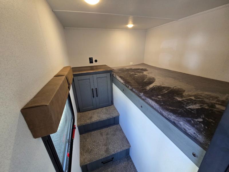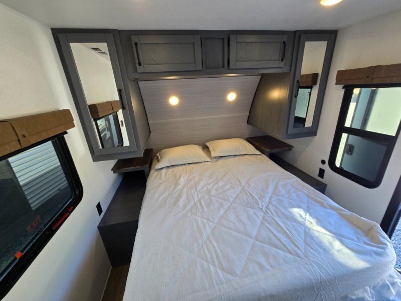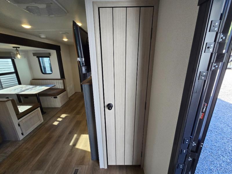 This spacious travel trailer is designed with families and larger groups in mind. With two private bunkrooms, everyone gets their own space to relax and store belongings. Parents will love the front master bedroom with a queen bed, dual shirt closets, and even a private entry door for added convenience.