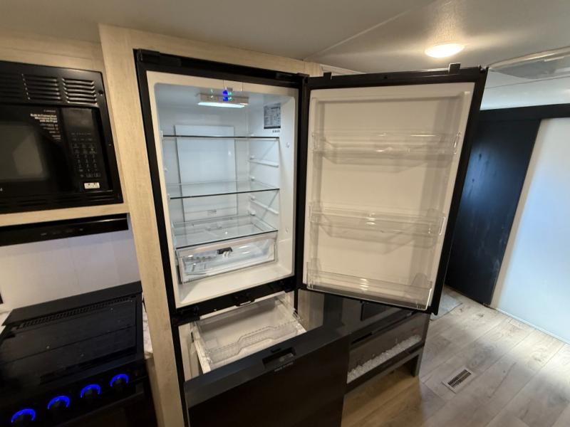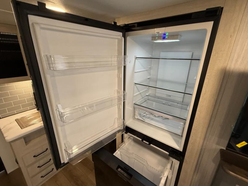 11 cu ft 12V refrigerator (black glass front doors on many units) with dual-swing style.