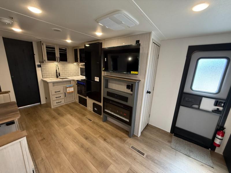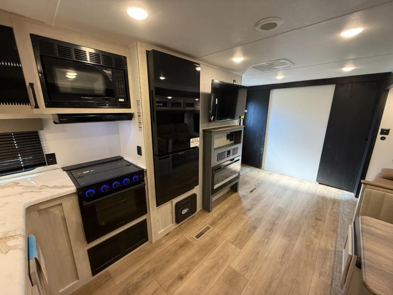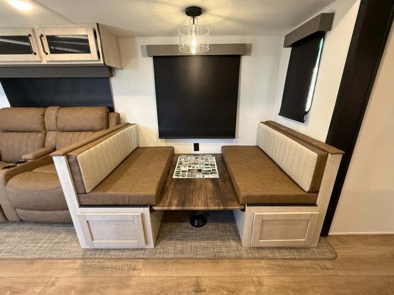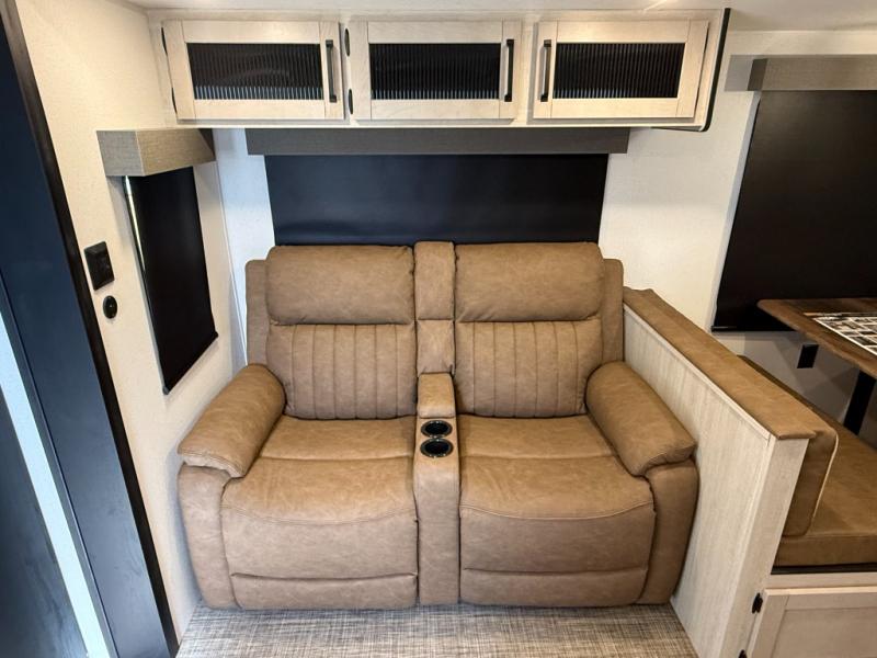 2 A/C's, Micro Outside Kitchen w/ Griddle, Theater Seating, Power Tongue Jack, 4 Electric Stab Jacks.