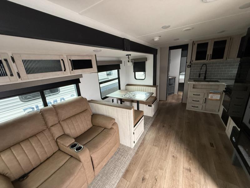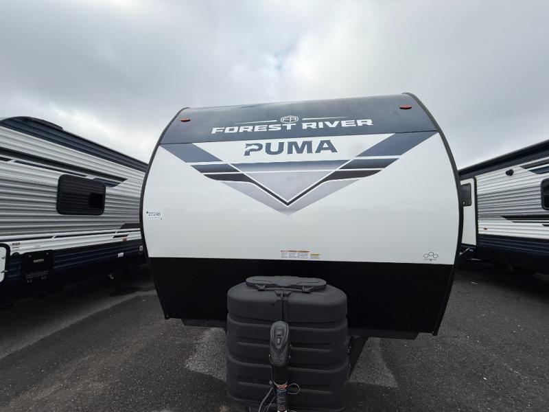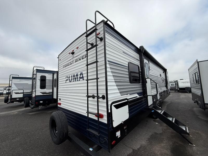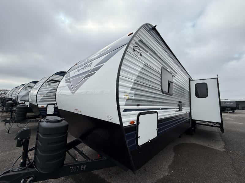 If you're looking for family-fun adventures then you need one of these Palomino Puma fifth wheels or travel trailers! They are built rugged, easy to tow, and jam packed with features. The Darco wrapped underbelly will protect your units vitals and the AlphaPly roofing membrane covers it. They also have new aluminum wheels and a powder coated steel I-beam frame. Inside, the Congoleum linoleum will be easy to keep clean, and the night roller shades will provide privacy when it's time to turn in. You'll also enjoy an electric awning with an LED light strip plus an AM/FM/Bluetooth stereo and two outside speakers to keep the party going!