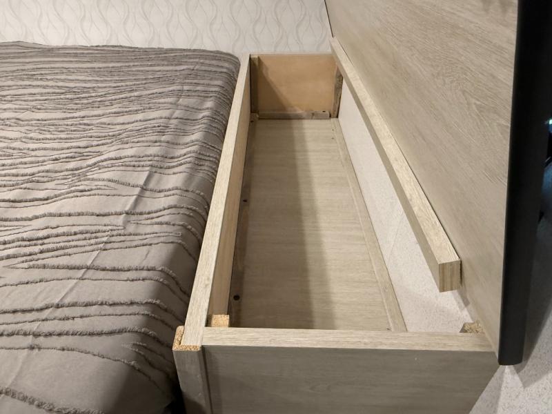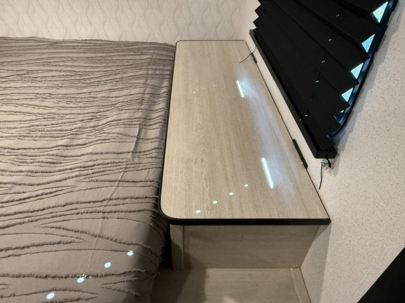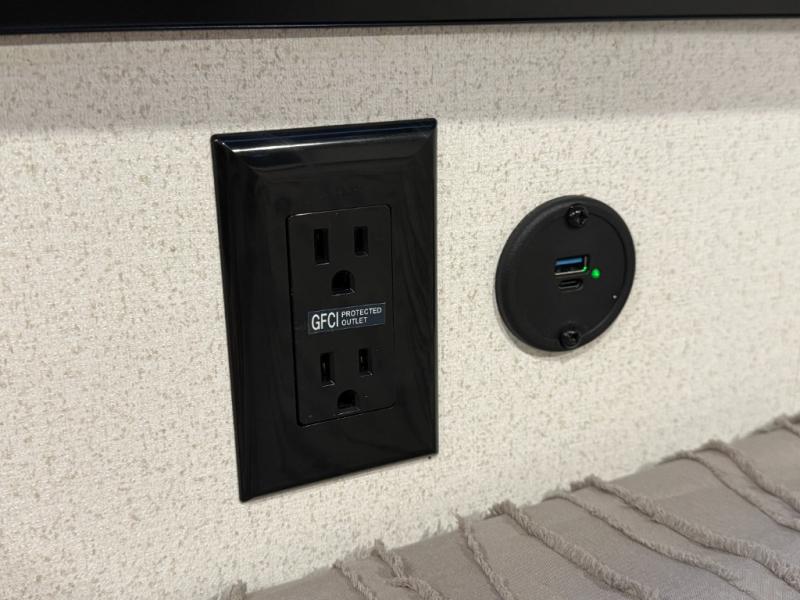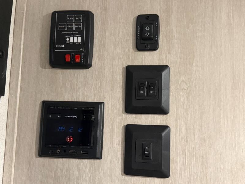 Backup Camera Prep, Battery Disconnect, Jiffy Sofa w/Flip down cupholder, Bedroom USB and Outlets.
