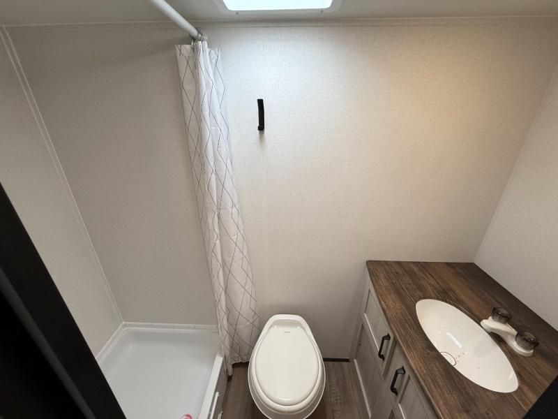Bathroom: Full rear bath with toilet, sink, and 36" x 30" shower