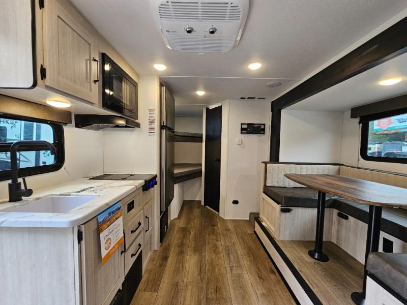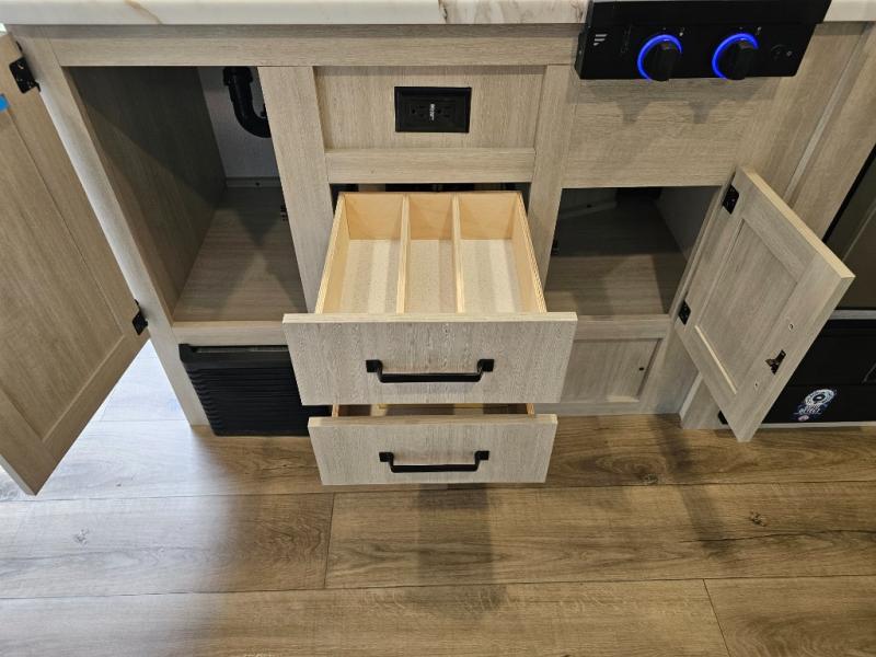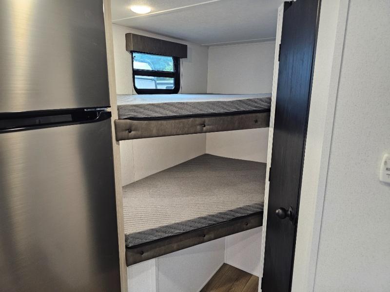 This model perfectly combines practicality and comfort in a compact floorplan. From the double bunks to the roomy dinette and outdoor griddle setup, it’s ideal for families and first-time campers alike. Enjoy the great outdoors without sacrificing the conveniences of home.