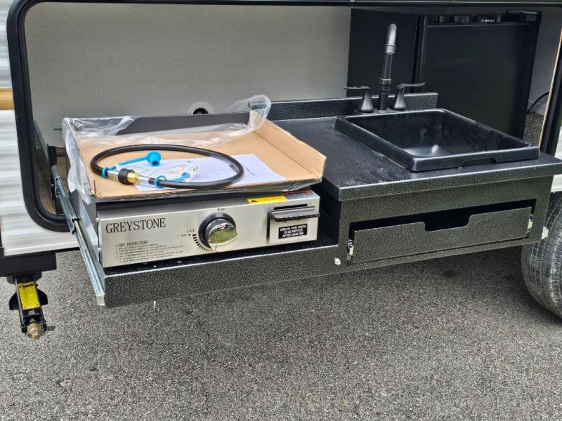 Optional (INCLUDED) mini kitchen with griddle lets you take cooking outdoors.