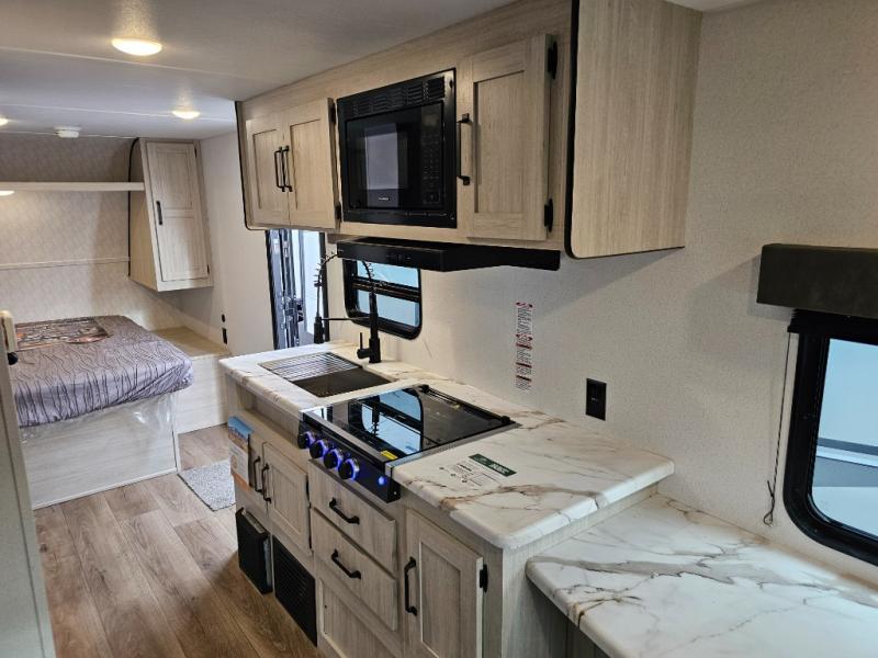 Compact yet feature-packed, the 20RLCE is perfect for couples or smaller groups who want a lightweight and affordable travel trailer without sacrificing comfort. With its bar table dining setup, front sleeping area, and full kitchen and bath, this model makes every weekend getaway simple, cozy, and fun.