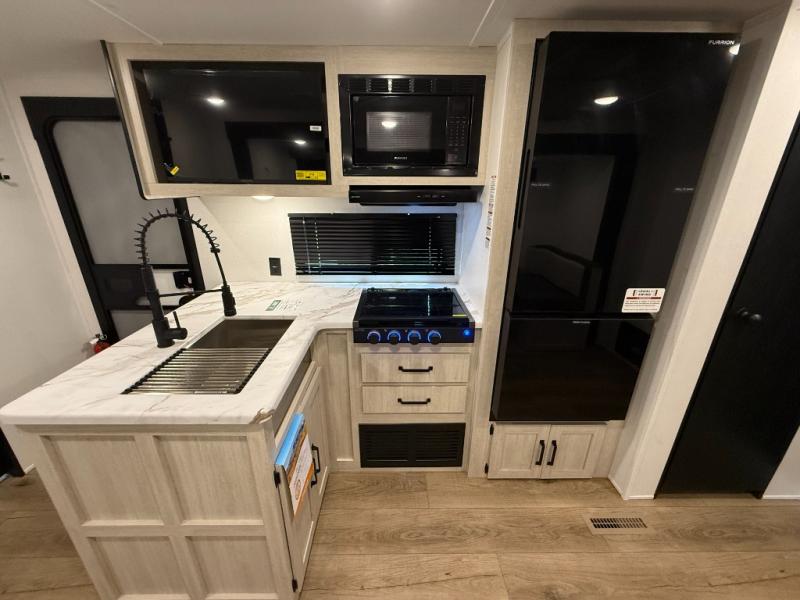 50 Amp Service, Micro Outside Kitchen w/Griddle, Power Tongue Jack, Jiffy Sofa.