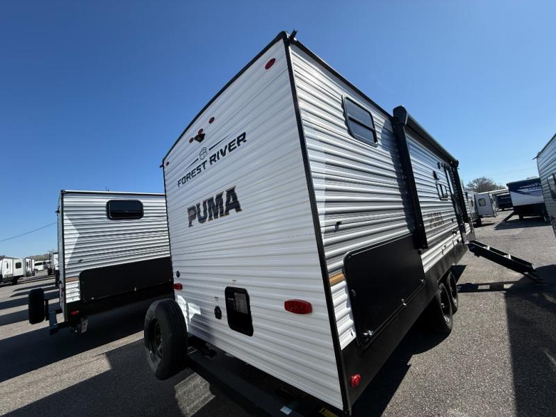 The Puma Camping Edition by Palomino offer an affordable travel trailer for rookie campers or seasoned RVers! They are built with 5/8" tongue and groove plywood flooring and a front diamond plate for added protection. There are also exterior clamp style door latches, back up camera prep, and 20 lb. LP bottles. Head inside to find Thermofoil countertops with a smooth drop edge, bedroom USB ports and outlets, and a GE appliance and kitchen package.