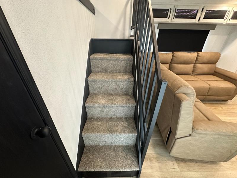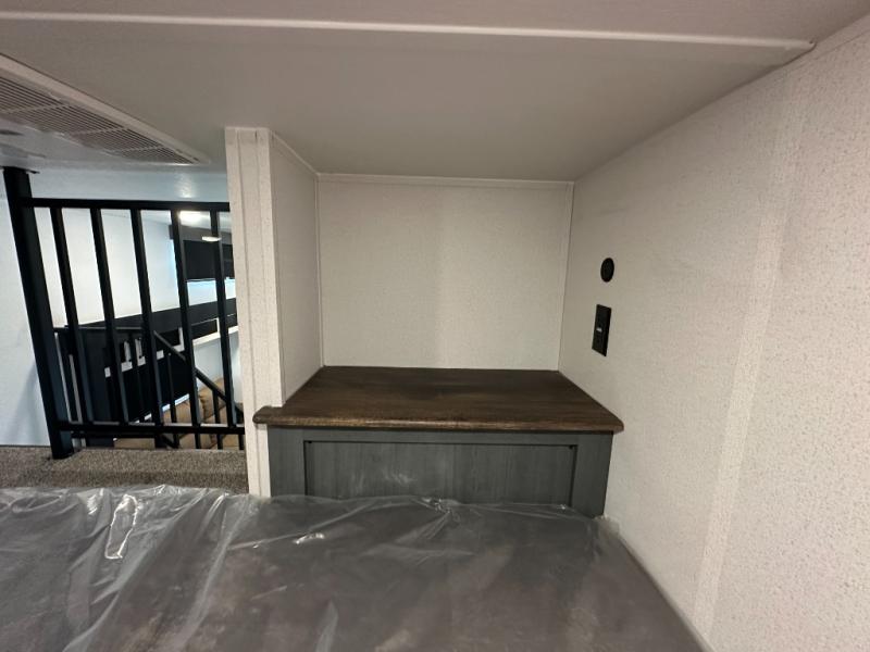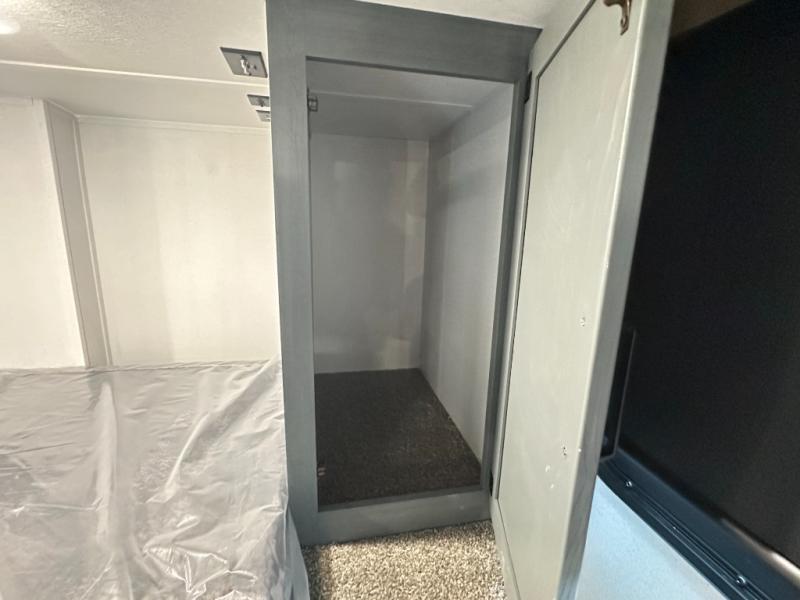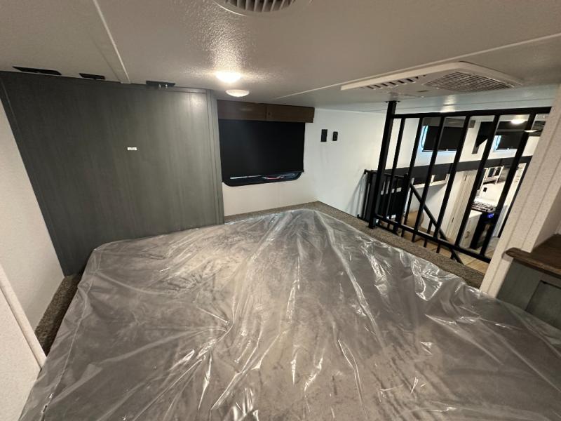 • One large loft above the front bedroom with two 32?×80? bunk mats, cabinets/cubby storage, etc.