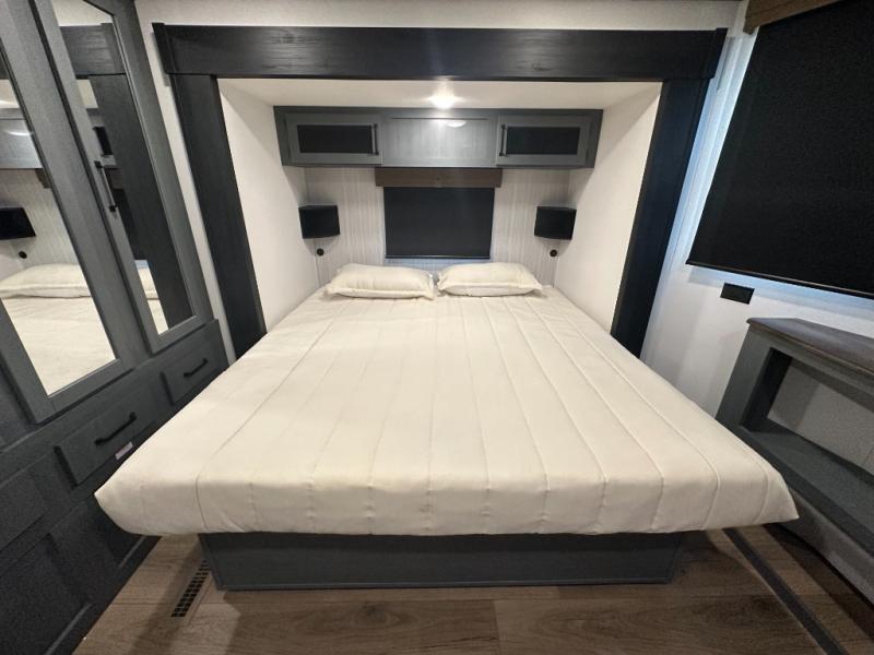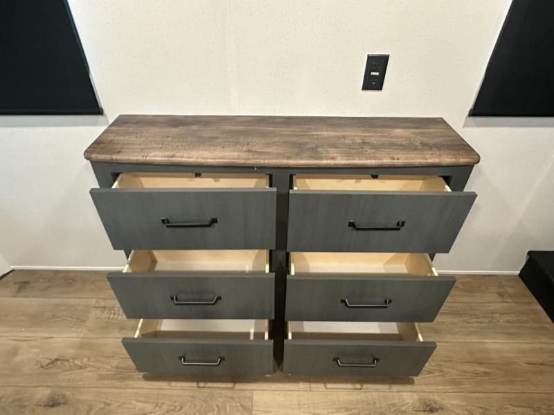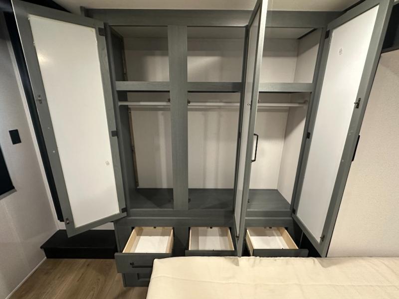 Front master bedroom with king bed slide-out, wardrobe & dresser Double lofts: