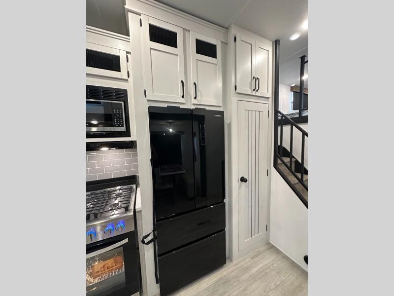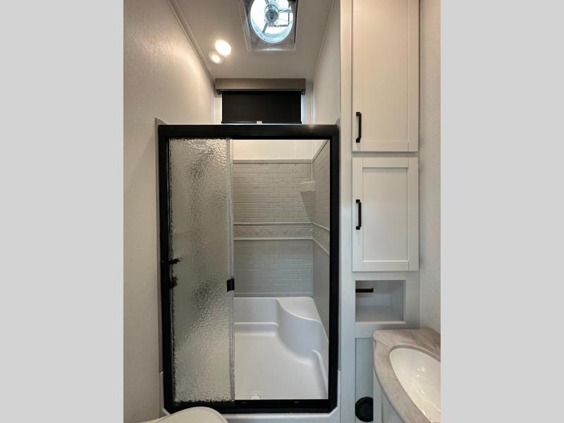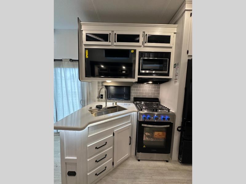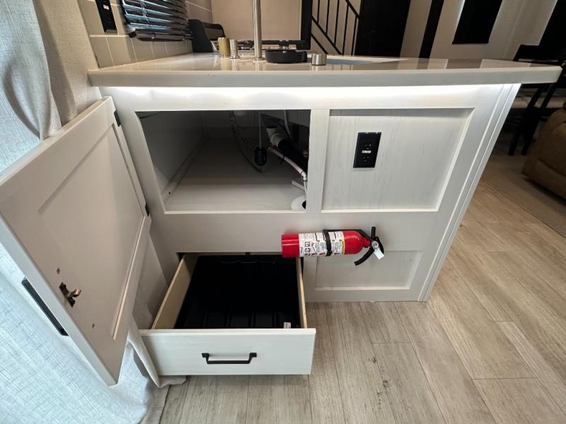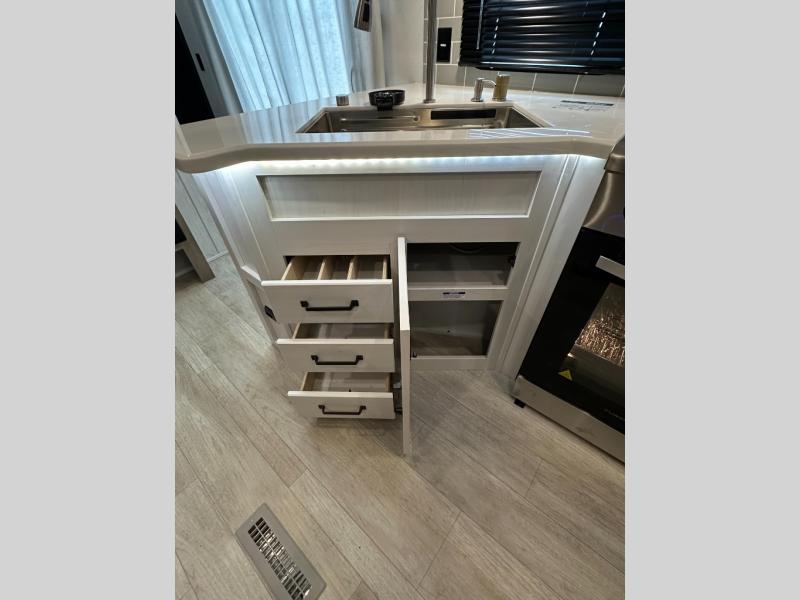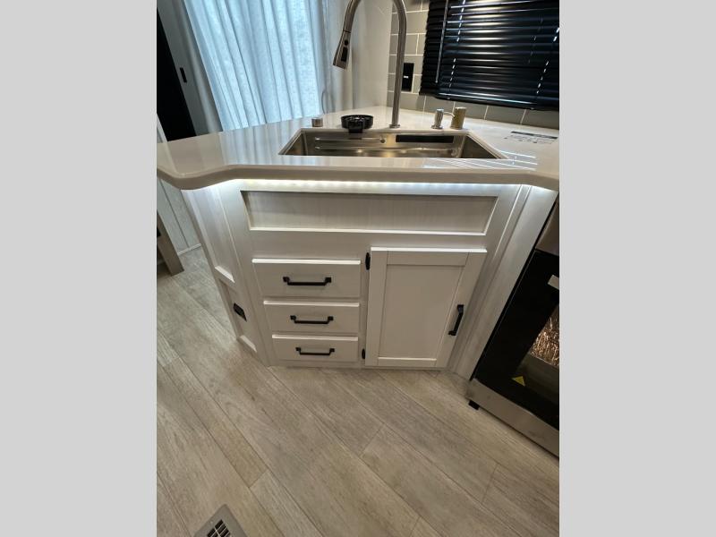 Solid-surface countertops, LED lighting, solar prep, WiFi prep, electric awning with LED strip