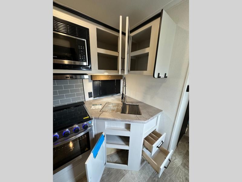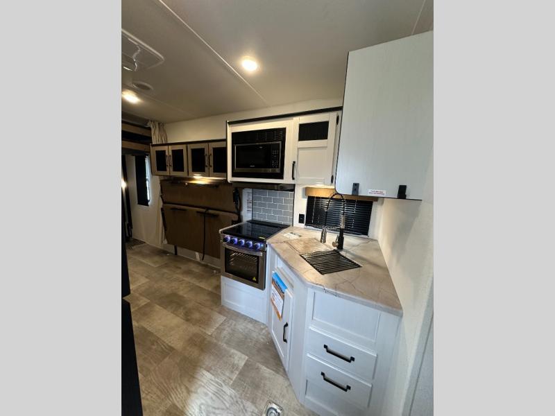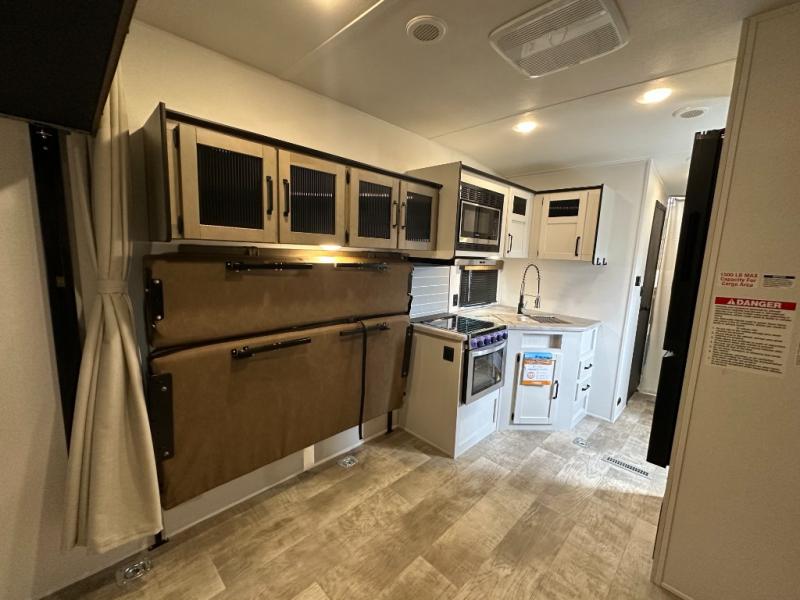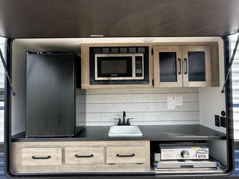 Outside Kitchen w/ Griddle, Power Tongue Jack, Solid Steps, 40" HD LED TV, Double Electric Trac Queen Bed.