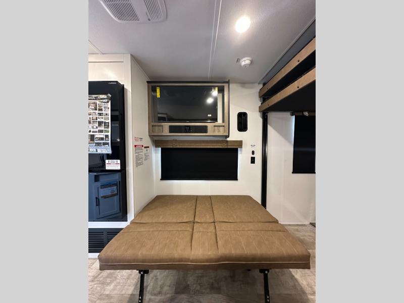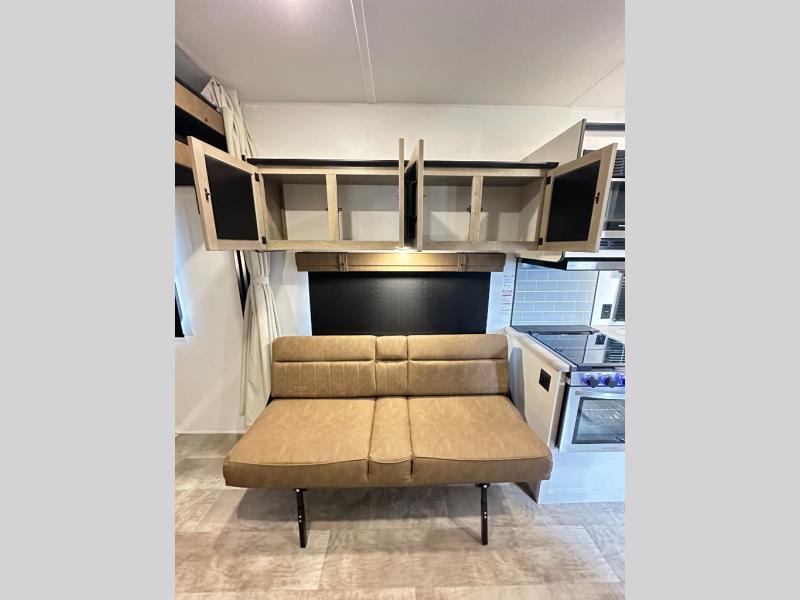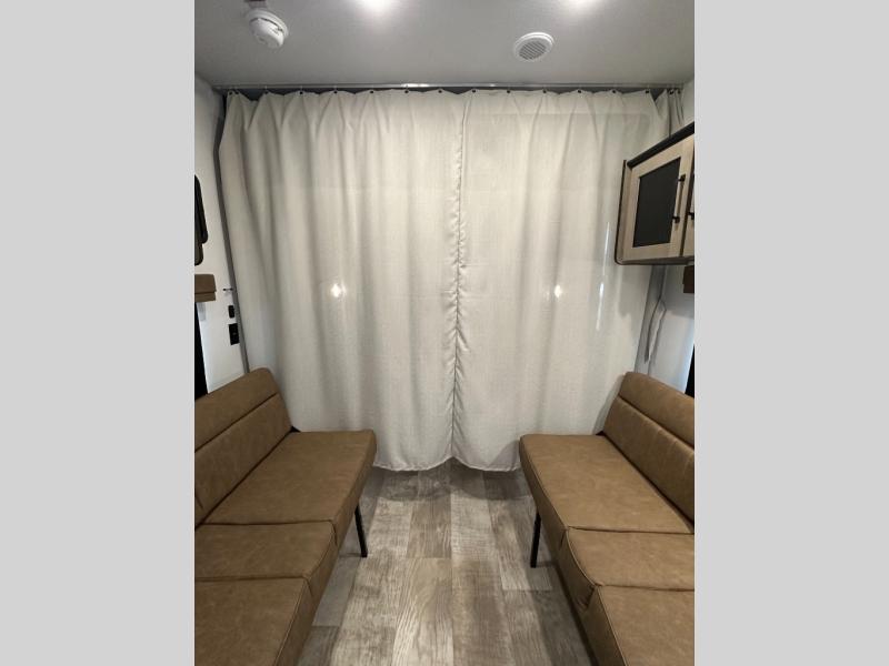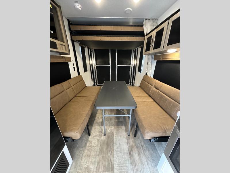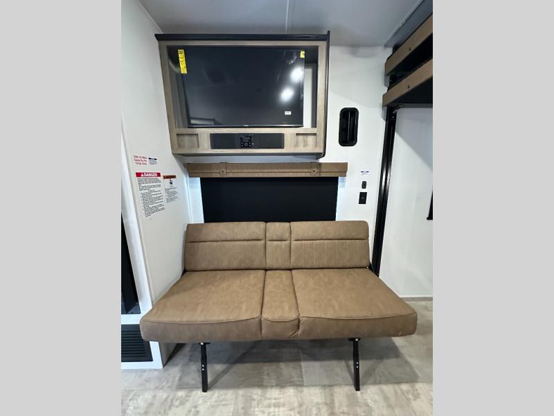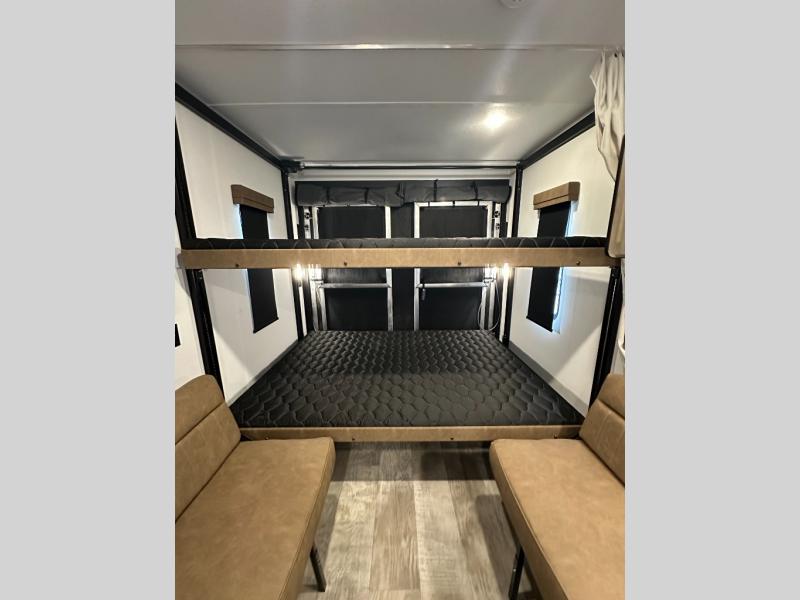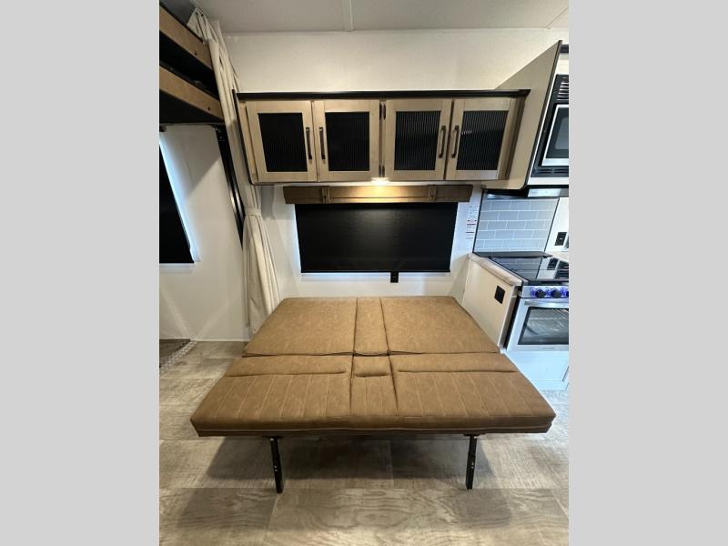 Multipurpose Furnishings: Two flip-up sleeper sofas plus a dinette provide both seating and sleep space. An optional electric lift queen bed is available for added sleeping capacity.