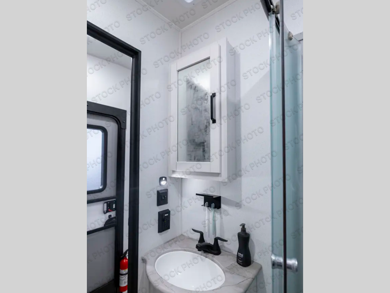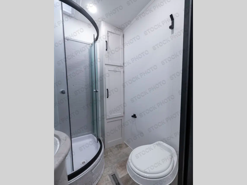 If space for toys is what you want, space is what you'll get in this toy hauler! There is a 6' 3" garage with 15' 10" total garage space when you use the tie-downs in the kitchen. Your crew can get comfortable on the rollover sleeper sofas or on the dual lounge chairs. The full bath with a 34" x 34" radius shower will let everyone stay clean, and the front private bedroom will feel just like home with its RV queen bed and dual shirt closets. If you need additional sleeping space for guests, you can add the optional queen bed electric lift in the garage!
