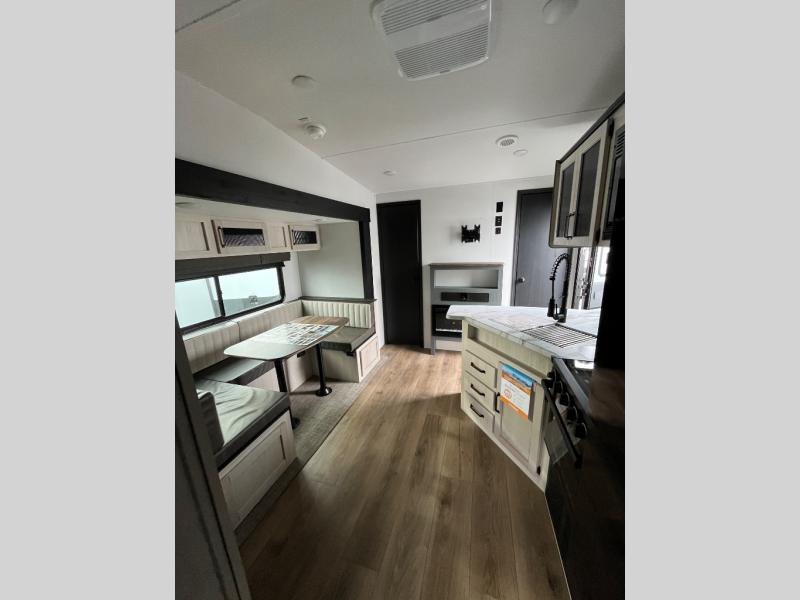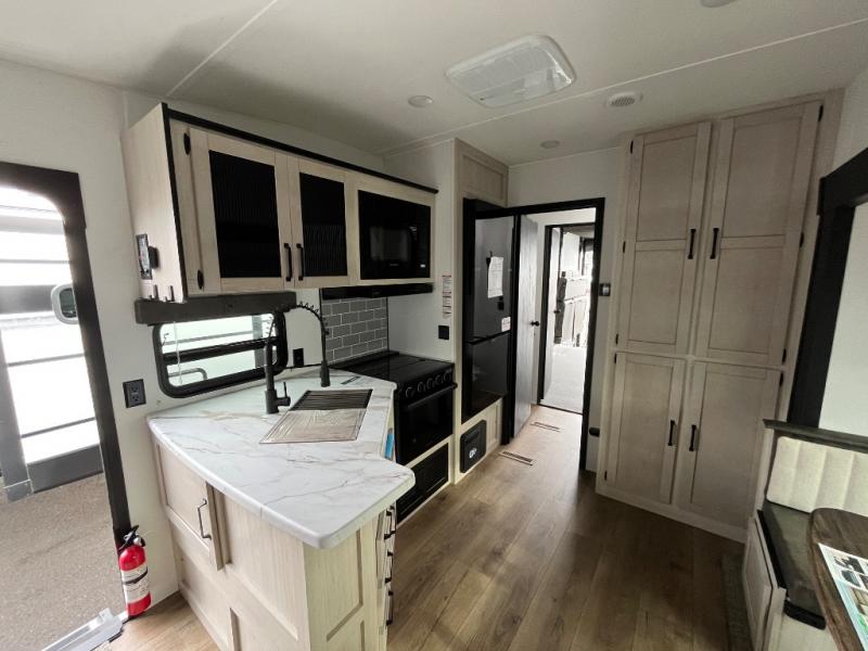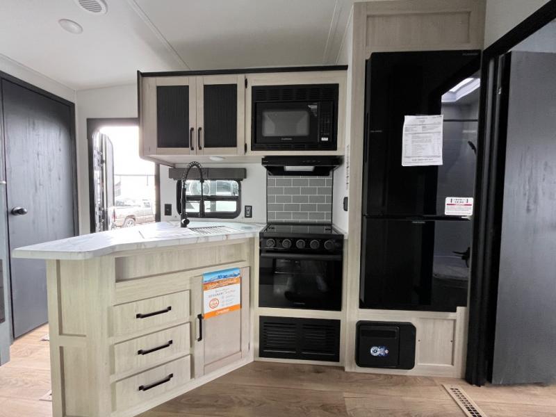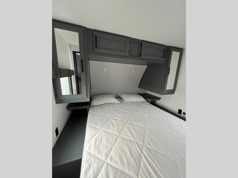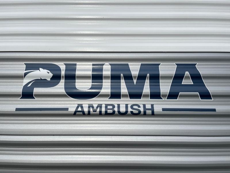 The most spacious toy hauler travel trailer in the Puma Unleased lineup, this unit is ready for adventure when you are! There are dual entry doors, one of which leads to the 13' separate garage. Here, you'll find 62" rollover sofas, an optional queen bed electric lift, plus a 7' 3" ramp door with spring assist for easy unloading. The walk-through bath will be easily accessible for everyone to use, and the main living room is shared with the kitchen so everyone can gather together when dinner is being made. A 21" stainless steel oven comes standard in the kitchen, along with a stainless steel microwave and an 11 cu. ft. 12V stainless steel residential refrigerator. When you're ready for bed, the front private bedroom with an RV queen bed will provide a great night's rest, and there are dual shirt closets to keep your clothes wrinkle-free.