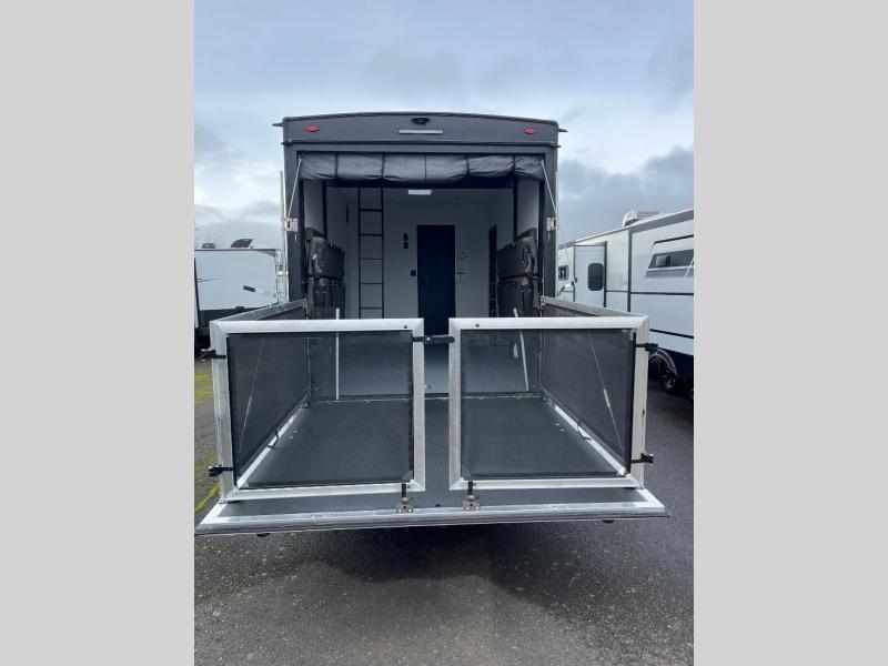 Each Puma Unleashed toy hauler travel trailer by Palomino is constructed with a durable ABS tub surround, super lube axles for smooth towing, and a rugged front diamond plate. You will enjoy premium amenities, including a plush bedspread and shams, LED lighting, and a bath skylight. Cook like a five-star chef with the 21" stainless steel oven and range hood, and indulge in entertainment with the AM/FM/Bluetooth stereo and outside speakers. Plus, you will love the convenient night roller shades, the outside shower ideal for outdoor enthusiasts, and so much more! Whether hauling motorcycles, ATVs, or gear for your next outdoor escapade, these toy hauler travel trailers are your ultimate adventure companion.