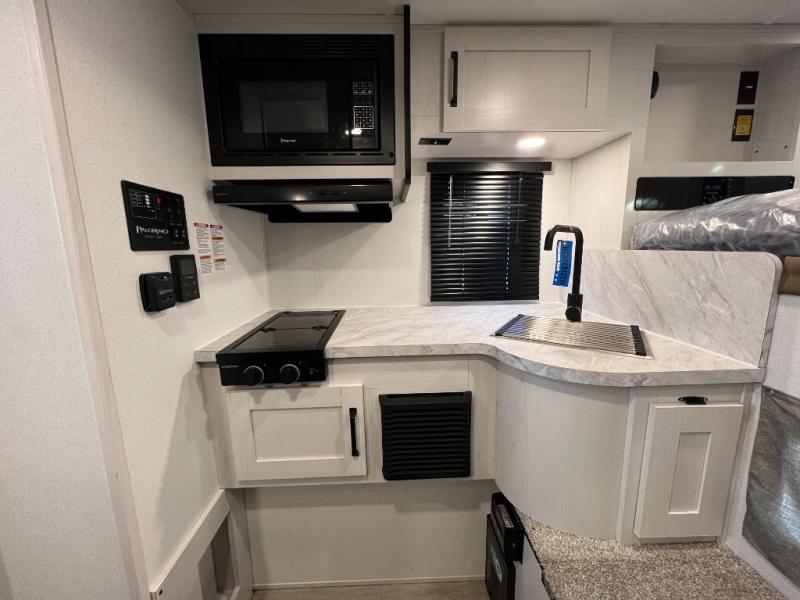 With any Real-Lite truck camper by Palomino you can sure you are getting a durable camper made to last thanks to the alpha super flex membrane roof, the high-density block foam insulation, and the hi-gloss exterior fiberglass. Whether you choose a soft side, hard side, or hard side max model, you won't be left wanting. There are (2) 200-watt solar panels and a 100-amp lithium battery to keep you powered up, and an optional second 100-amp lithium battery can be added for even more power. Inside, you'll enjoy the LED lighting, Maxxair vent, and stylish white cabinets!