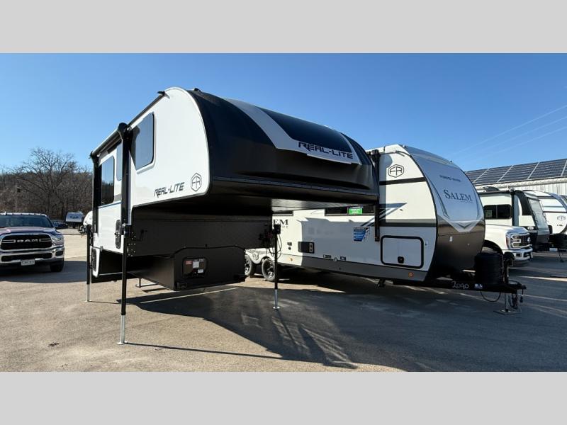 With any Real-Lite truck camper by Palomino you can sure you are getting a durable camper made to last thanks to the alpha super flex membrane roof, the high-density block foam insulation, and the hi-gloss exterior fiberglass. Whether you choose a soft side, hard side, or hard side max model, you won't be left wanting. There are (2) 200-watt solar panels and a 100-amp lithium battery to keep you powered up, and an optional second 100-amp lithium battery can be added for even more power. Inside, you'll enjoy the LED lighting, Maxxair vent, and stylish white cabinets!