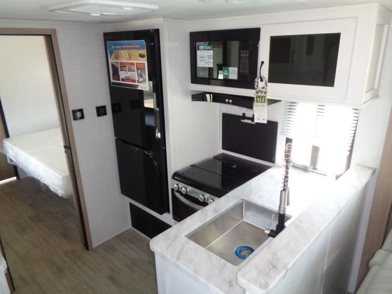 Each SolAire travel trailer by Palomino features a white gel coat exterior and an aluminum superstructure frame for lightweight towing. You will love having a power tongue jack for easy set up, plus slam latch baggage doors with magnets to make unloading easier than ever. There is also a power awning with LED lights and aluminum wheels included on the exterior. Each SolAire is constructed to last with Azdel composite, a fully laminated rear wall and roof, plus a fully enclosed and heated underbelly. The interior includes roller shades and kitchen backsplash, USB ports to keep your electronics charged, a Bluetooth stereo with speakers, and many more stand-out features!