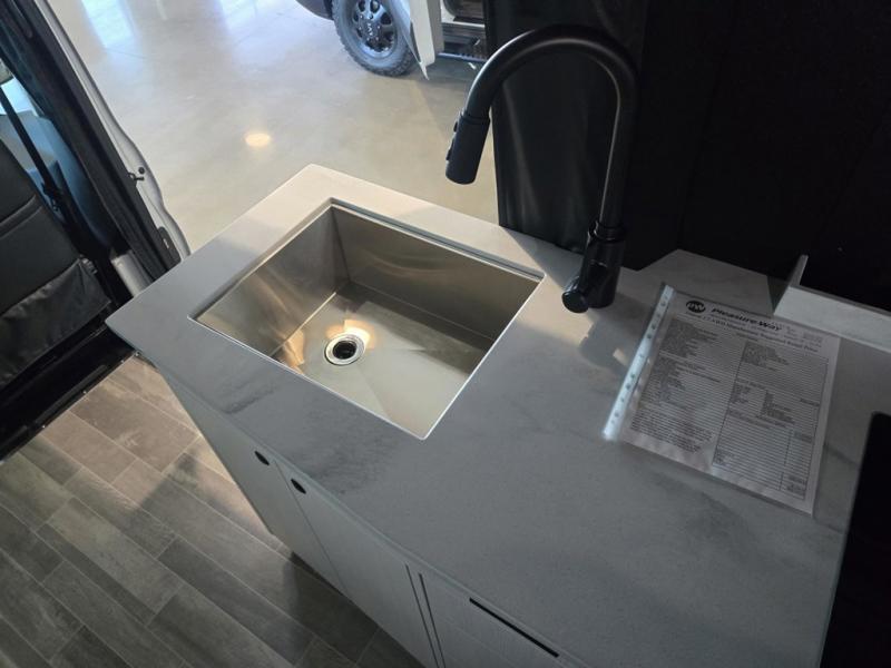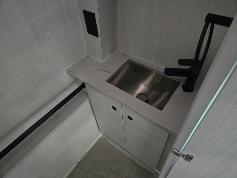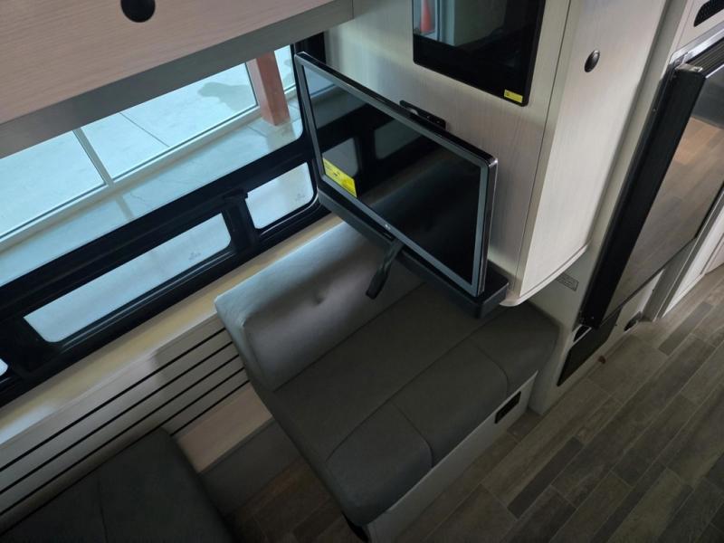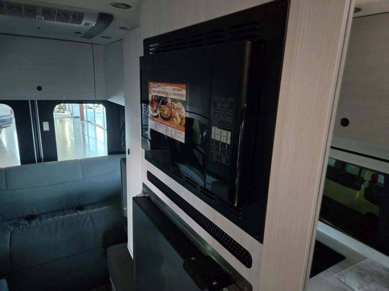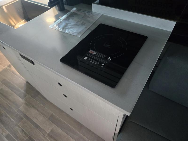 This 2.2 Ontour model is similar to model 2.0, but with a larger refrigerator, and more storage space in the bath. The rear power sofa converts to a 68" x 76" queen-sized bed with memory foam cushions for all-around comfort and the wet bath allows you to clean up each day. There is also a vanity with storage, a sink, and a Corian countertop in the bath for added convenience. Prepare meals either on the one burner induction stove top or in the microwave oven and clean up will be a breeze with a stainless steel sink that includes a high-arc faucet.