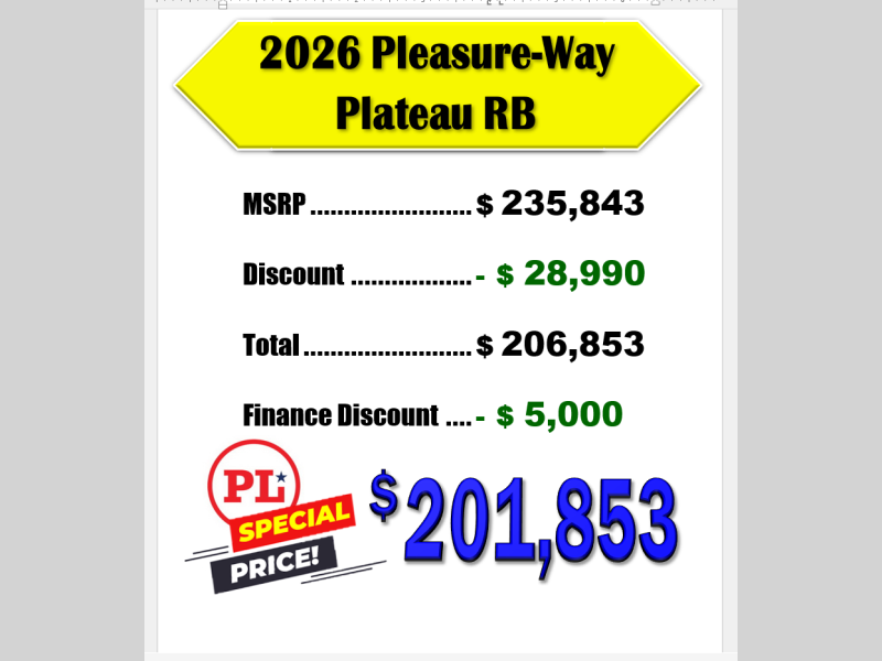 New 2026 Pleasure-Way Plateau RB Motor Home Class B
