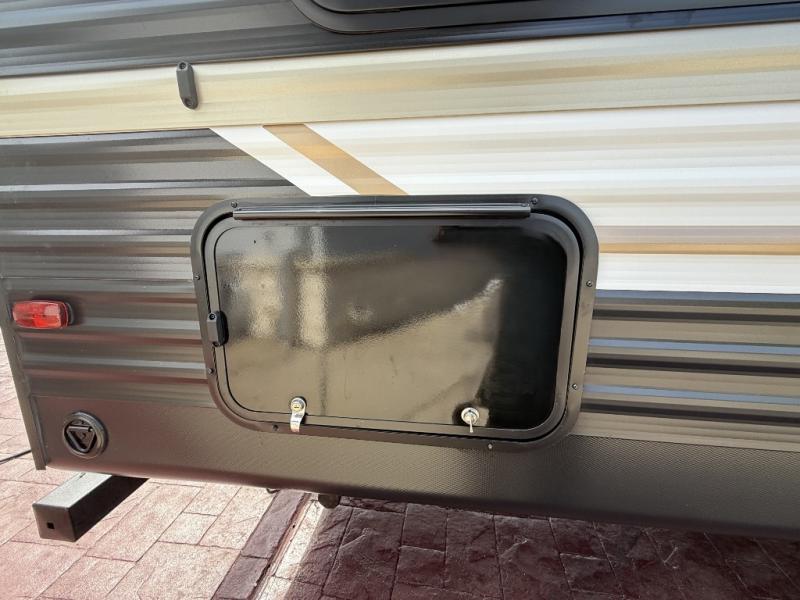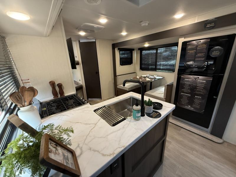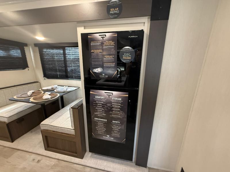With any Avenger travel trailer by Prime Time RV, you will find innovation, a solid build, and comfort at every turn. Each model is built with Tuff Coat on the exterior metal, a fully enclosed underbelly, and a PVC roof membrane to help extend the life of your trailer. You will also find automotive name badging on the exterior, along with an exterior shower, front rail LED light strips, plus an XL padded entry grab handle to name a few conveniences. There are plenty of storage spaces inside, as well as Congoleum flooring and woven PVC marine grade slide out flooring, a designer shower surround, and seamless pressed countertops. You are sure to appreciate the onboard water filtration system, tankless water heater, plus 30K BTU furnace and 15K ducted A/C to help keep you comfortable.