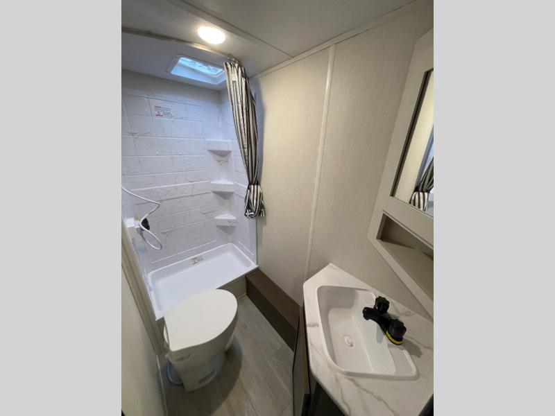 With any Avenger travel trailer by Prime Time RV, you will find innovation, a solid build, and comfort at every turn. Each model is built with Tuff Coat on the exterior metal, a fully enclosed underbelly, and a PVC roof membrane to help extend the life of your trailer. You will also find automotive name badging on the exterior, along with an exterior shower, front rail LED light strips, plus an XL padded entry grab handle to name a few conveniences. There are plenty of storage spaces inside, as well as Congoleum flooring and woven PVC marine grade slide out flooring, a designer shower surround, and seamless pressed countertops. You are sure to appreciate the onboard water filtration system, tankless water heater, plus 30K BTU furnace and 15K ducted A/C to help keep you comfortable.