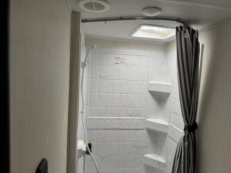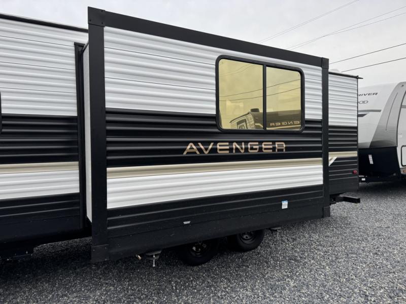 With any Avenger travel trailer by Prime Time RV, you will find innovation, a solid build, and comfort at every turn. Each model is built with Tuff Coat on the exterior metal, a fully enclosed underbelly, and a PVC roof membrane to help extend the life of your trailer. You will also find automotive name badging on the exterior, along with an exterior shower, front rail LED light strips, plus an XL padded entry grab handle to name a few conveniences. There are plenty of storage spaces inside, as well as Congoleum flooring and woven PVC marine grade slide out flooring, a designer shower surround, and seamless pressed countertops. You are sure to appreciate the onboard water filtration system, tankless water heater, plus 30K BTU furnace and 15K ducted A/C to help keep you comfortable.
