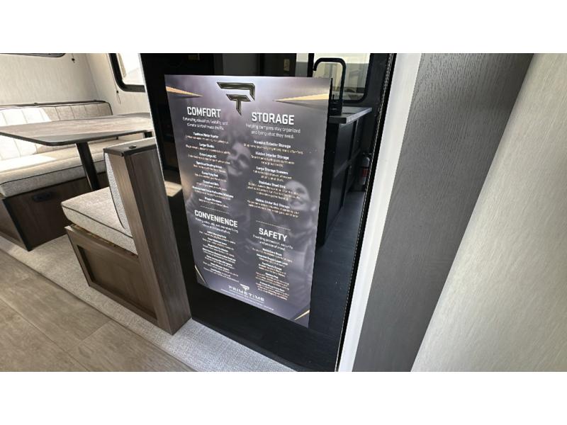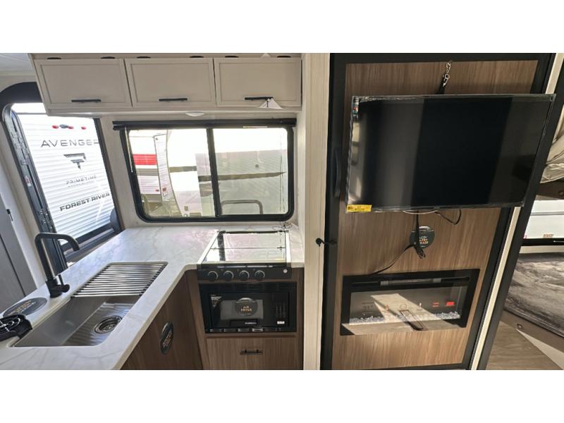 With any Avenger travel trailer by Prime Time RV, you will find innovation, a solid build, and comfort at every turn. Each model is built with Tuff Coat on the exterior metal, a fully enclosed underbelly, and a PVC roof membrane to help extend the life of your trailer. You will also find automotive name badging on the exterior, along with an exterior shower, front rail LED light strips, plus an XL padded entry grab handle to name a few conveniences. There are plenty of storage spaces inside, as well as Congoleum flooring and woven PVC marine grade slide out flooring, a designer shower surround, and seamless pressed countertops. You are sure to appreciate the onboard water filtration system, tankless water heater, plus 30K BTU furnace and 15K ducted A/C to help keep you comfortable.