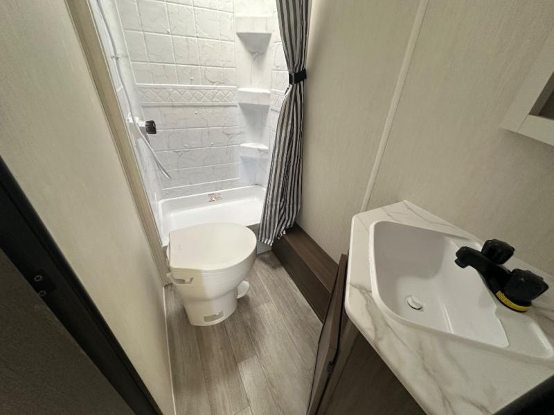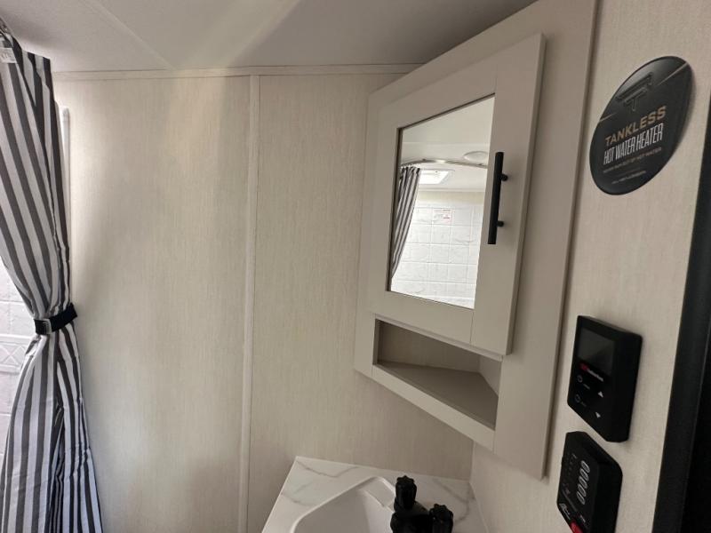 With any Avenger travel trailer by Prime Time RV, you will find innovation, a solid build, and comfort at every turn. Each model is built with Tuff Coat on the exterior metal, a fully enclosed underbelly, and a PVC roof membrane to help extend the life of your trailer. You will also find automotive name badging on the exterior, along with an exterior shower, front rail LED light strips, plus an XL padded entry grab handle to name a few conveniences. There are plenty of storage spaces inside, as well as Congoleum flooring and woven PVC marine grade slide out flooring, a designer shower surround, and seamless pressed countertops. You are sure to appreciate the onboard water filtration system, tankless water heater, plus 30K BTU furnace and 15K ducted A/C to help keep you comfortable.