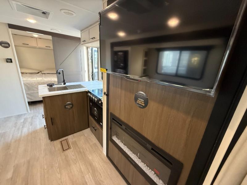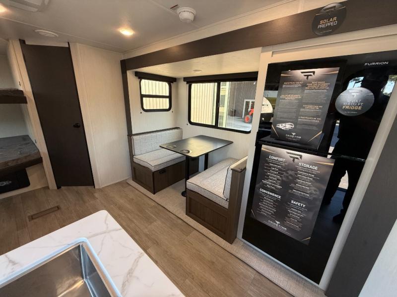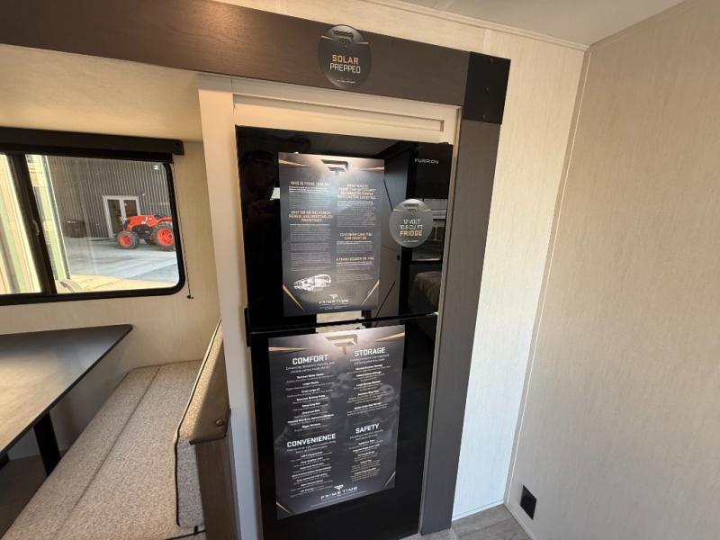 With any Avenger travel trailer by Prime Time RV, you will find innovation, a solid build, and comfort at every turn. Each model is built with Tuff Coat on the exterior metal, a fully enclosed underbelly, and a PVC roof membrane to help extend the life of your trailer. You will also find automotive name badging on the exterior, along with an exterior shower, front rail LED light strips, plus an XL padded entry grab handle to name a few conveniences. There are plenty of storage spaces inside, as well as Congoleum flooring and woven PVC marine grade slide out flooring, a designer shower surround, and seamless pressed countertops. You are sure to appreciate the onboard water filtration system, tankless water heater, plus 30K BTU furnace and 15K ducted A/C to help keep you comfortable.